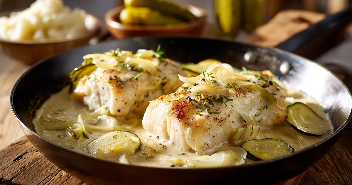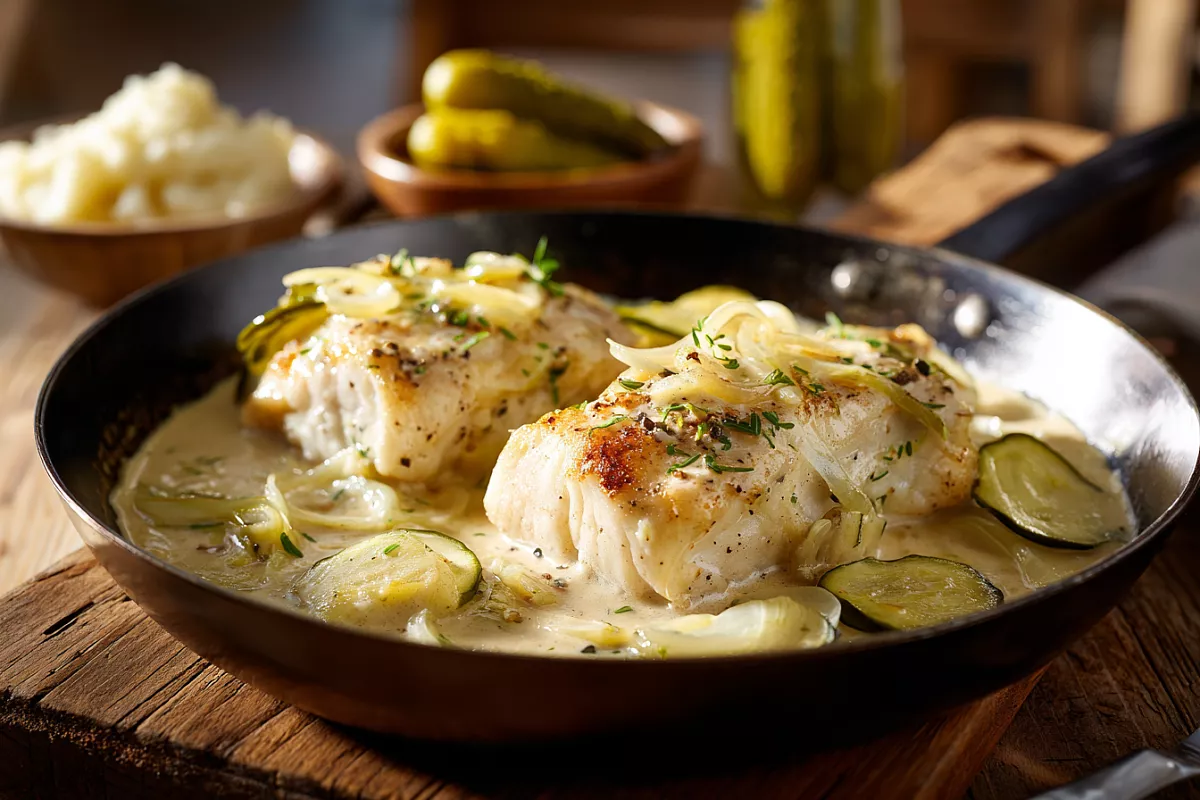 Нежная рыба в кисло-сладком соусе с хрустящими огурцами тушится на сковороде и идеально сочетается с пюре.