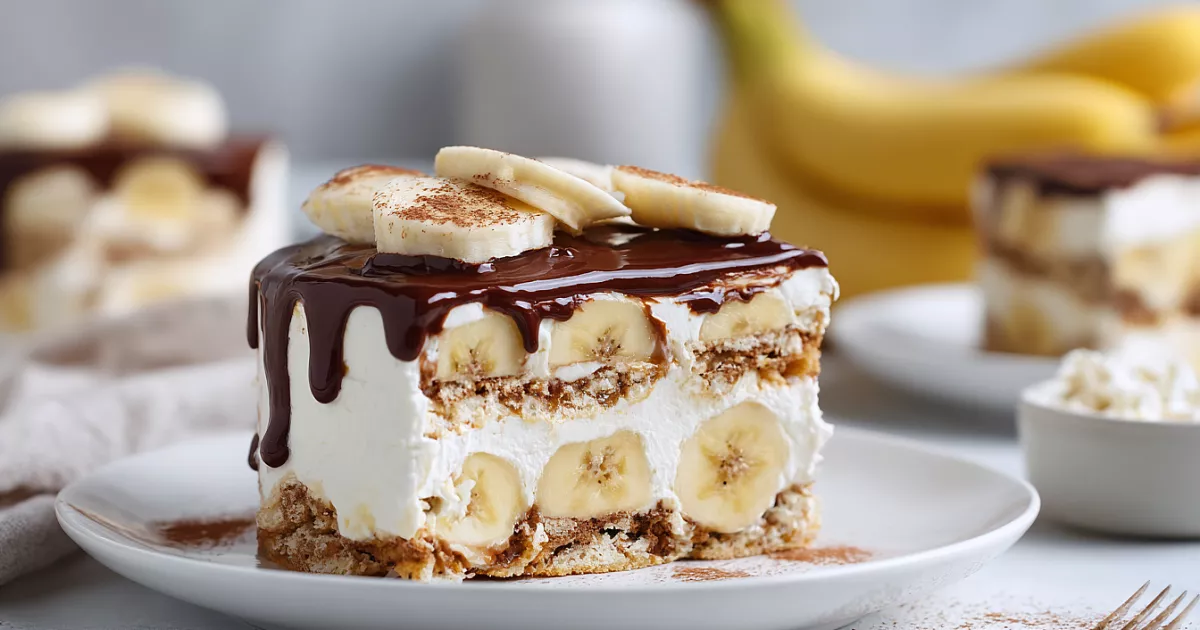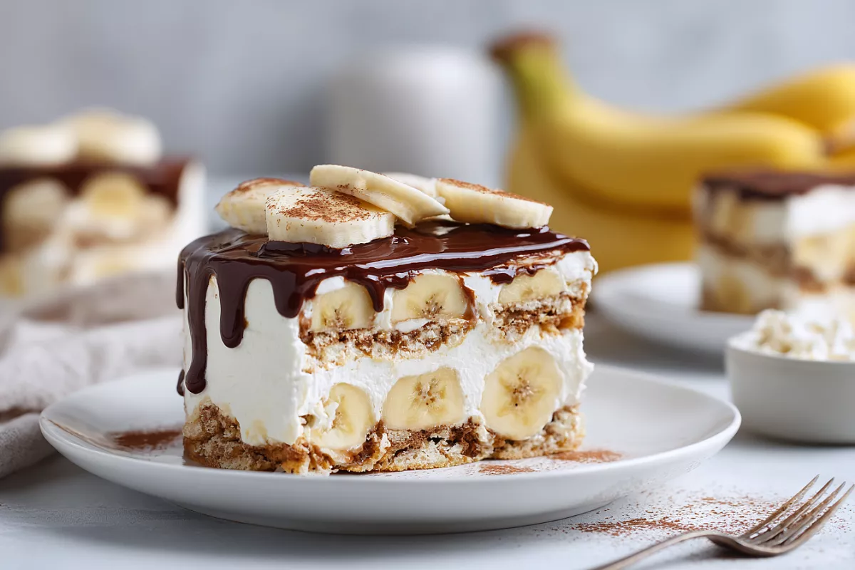 Нежный творожно-сметанный крем с бананами и хрустящим крекером тает во рту.