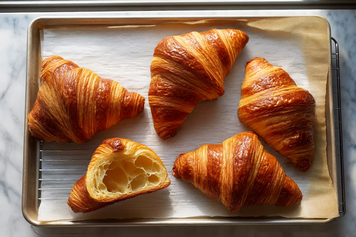 Выпекайте при 170 °C ~16 минут с конвекцией до глубокого золотистого цвета. Дайте отдохнуть и наслаждайтесь тонкой слоистостью на разрезе.