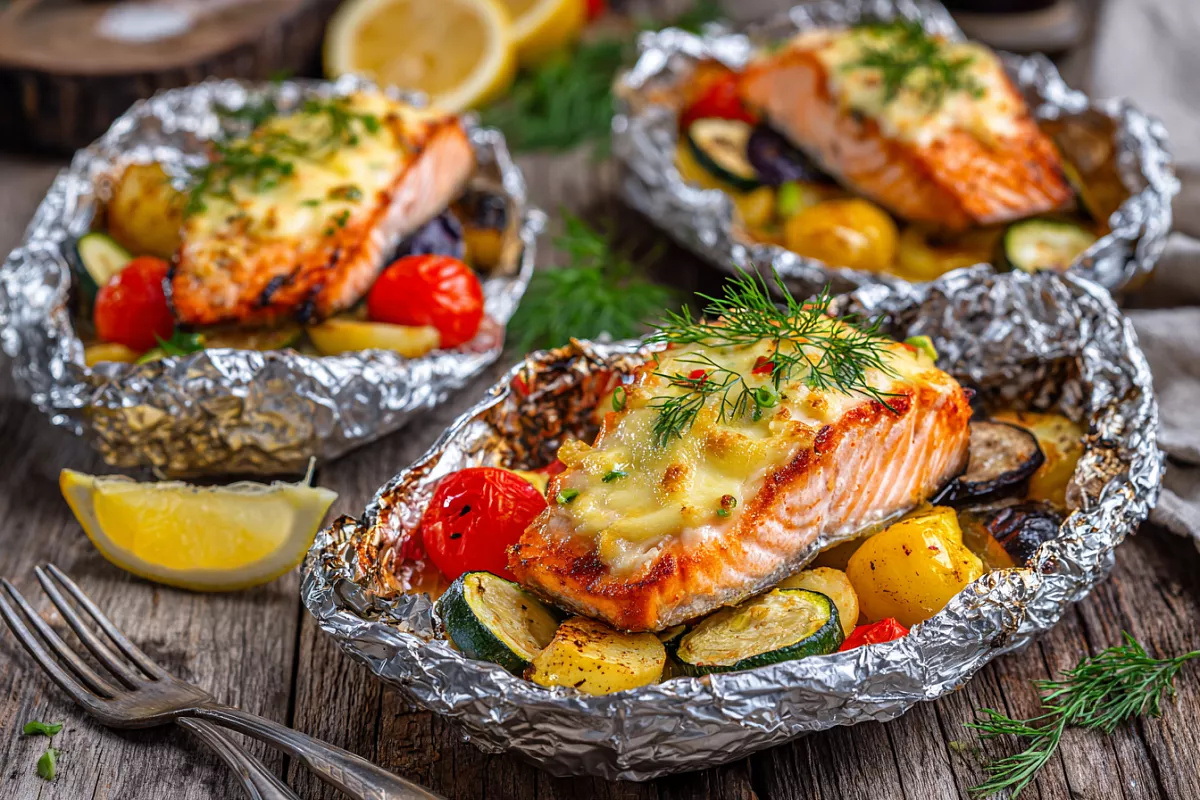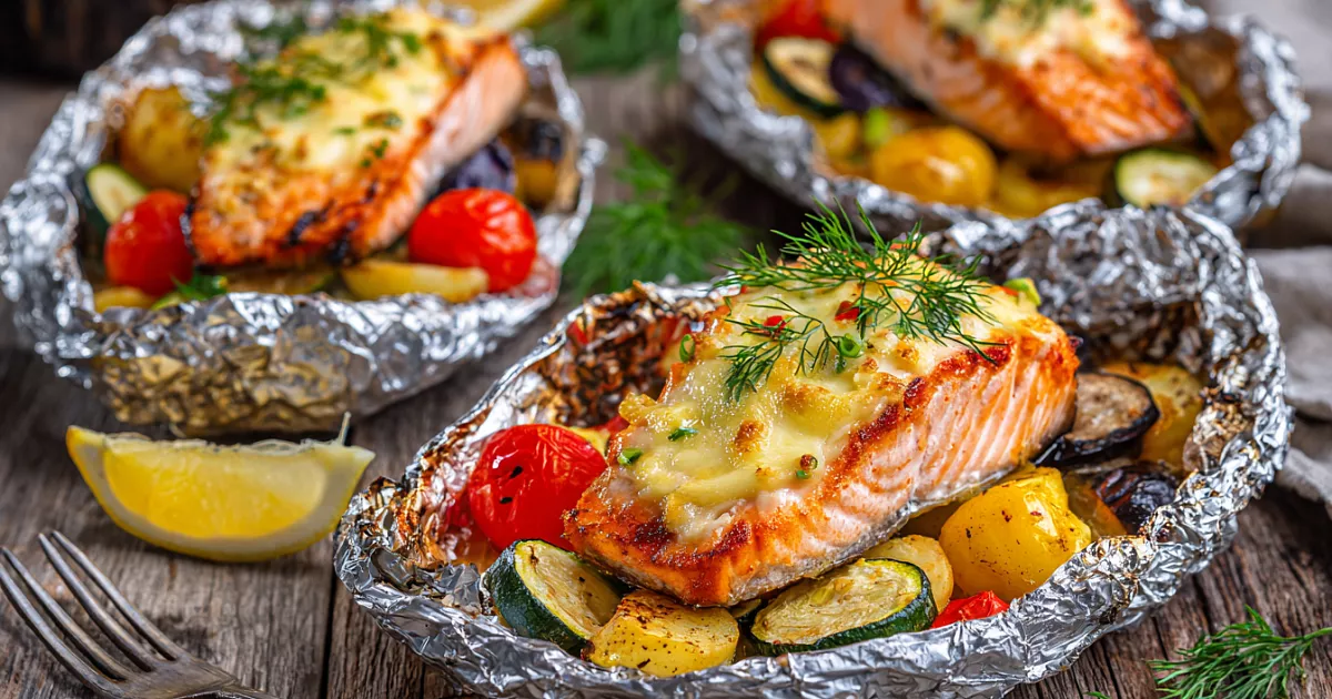 Духовку разогреваем до 200°C. Запекаем 20 минут. Достаём, посыпаем 30 г тёртого сыра и рубленой зеленью. Возвращаем в выключенную духовку на 2–3 минуты – сыр расплавится корочкой. Подаём в фольге – рыба сочная, овощи ароматные.