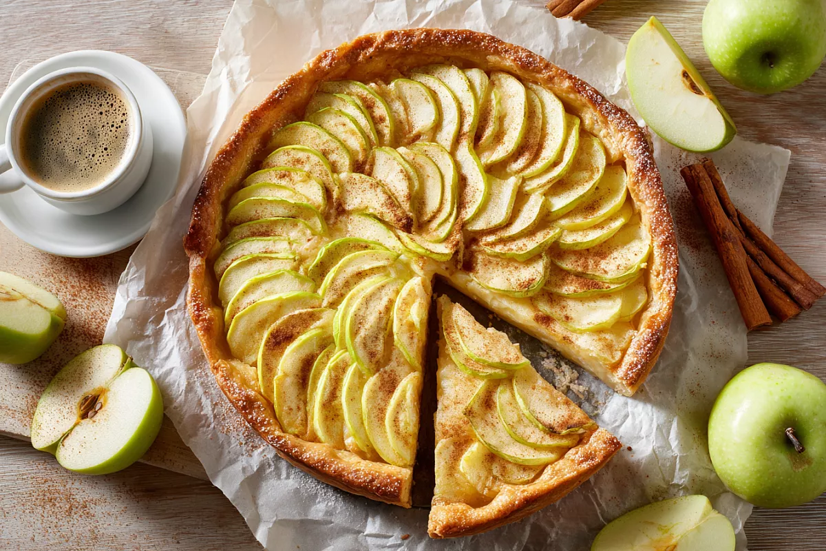 Сливочное тесто с кисло-сладкими яблочными дольками и пряной корицей выпекается за 25 минут.