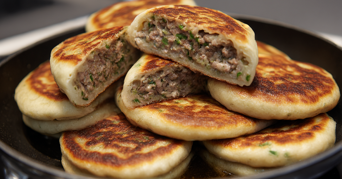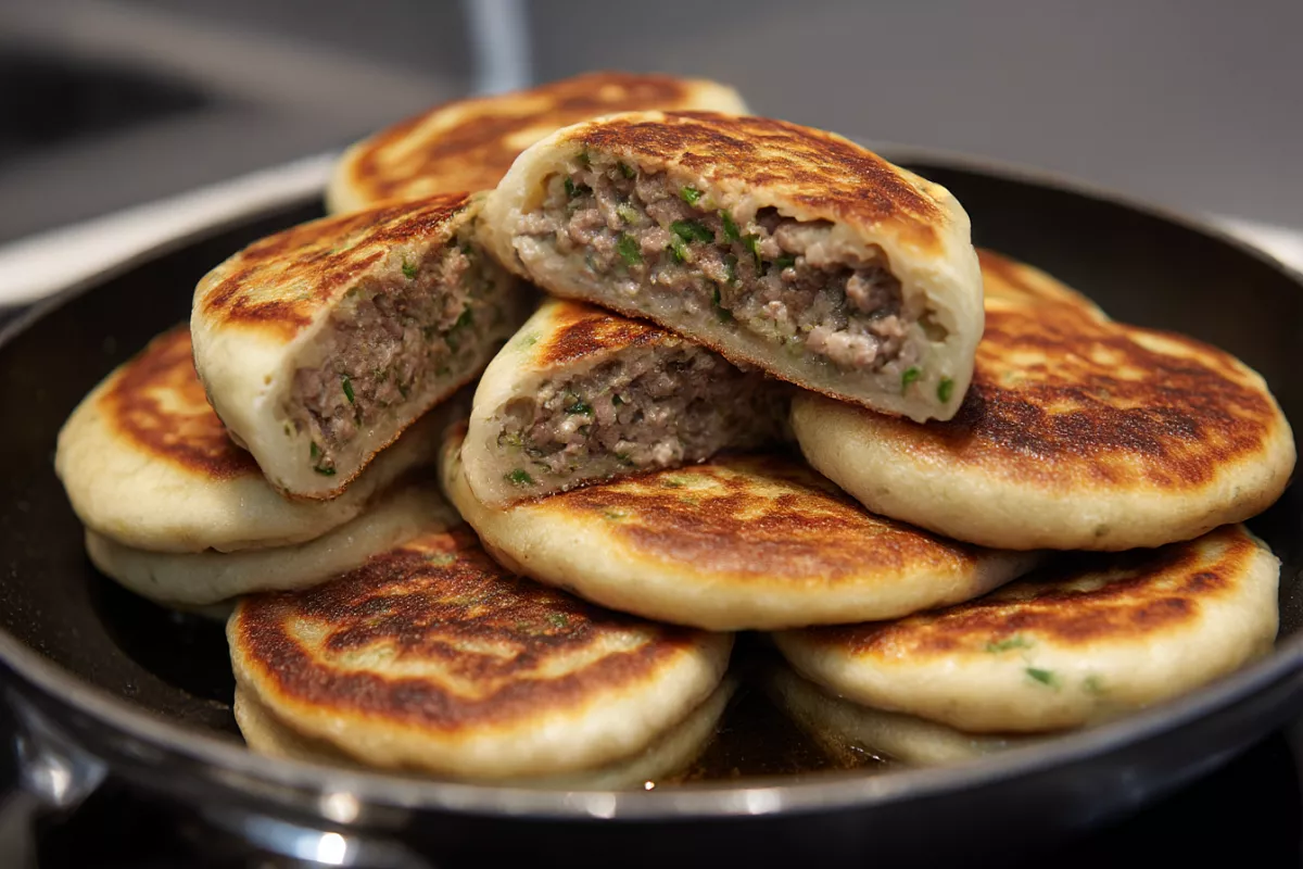 Это те самые «быстрые» лепёшки, где тесто получается мягким и эластичным, легко раскатывается без лишней муки, а начинки много и она прямо сочится ароматным соком. После обжарки лепёшки исчезают ещё горячими — так вкусно и сытно. Если сомневаетесь в готовности фарша внутри, можно на минутку-другую поддержать лепёшки при 180 °C — и совесть спокойна, и аппетит только сильнее
