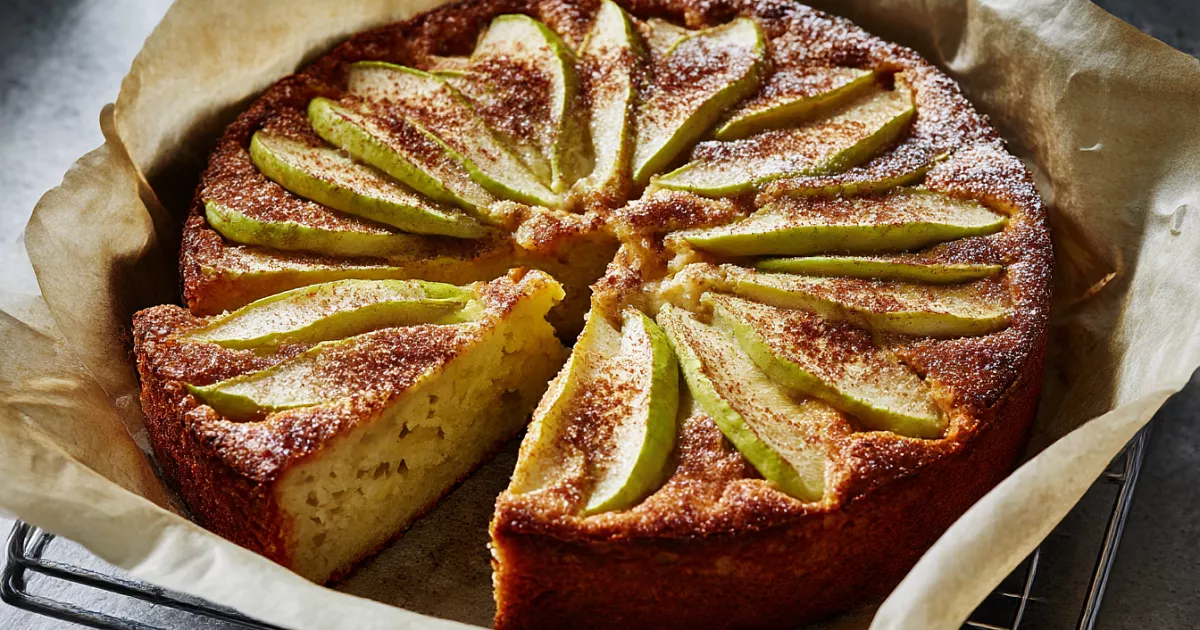 Готовим нежный пирог с дольками зелёных яблок, корицей и кардамоном в форме 20 см при 180 °C — быстро и по-домашнему