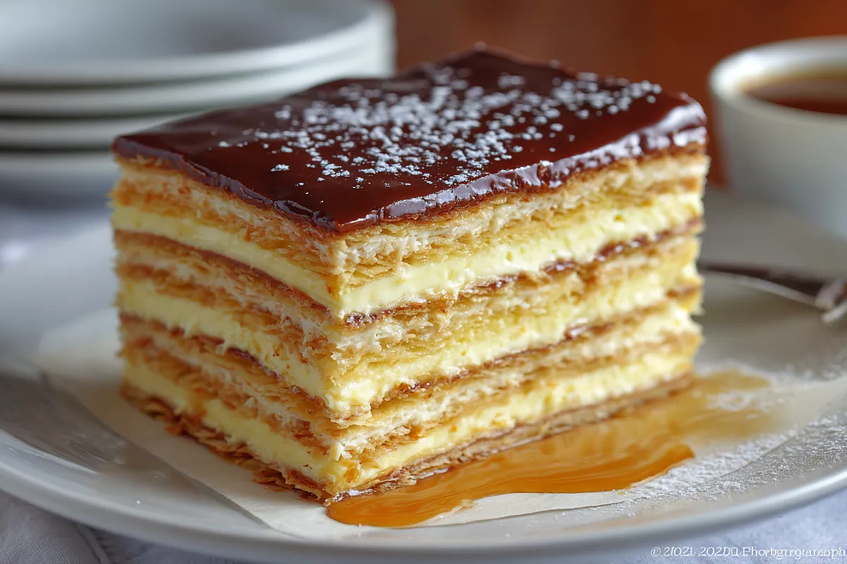 Коржи не перепекайте — сухость лишняя. Всегда прокалывайте вилкой перед выпечкой. Заварную часть и масло выравнивайте по температуре — крем не расслоится. Для спокойной работы раскатайте все 8 пластов заранее, каждый на своём пергаменте.
