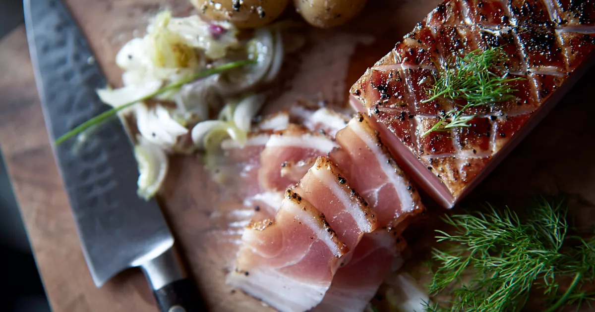 Это тот самый «народный» вкус: охлаждённый ломтик на чёрный хлеб, рядом горячая картошка — и хватает лишь перца с чесноком. Но за простотой есть важная деталь: безопасность. Сырой продукт с мясными прослойками требует не «быстрой солёной воды на 3–4 дня», а чёткого режима на 21 день с заменой рассола. Так вы получите и равномерный просол, и спокойную совесть — без рисков для здоровья