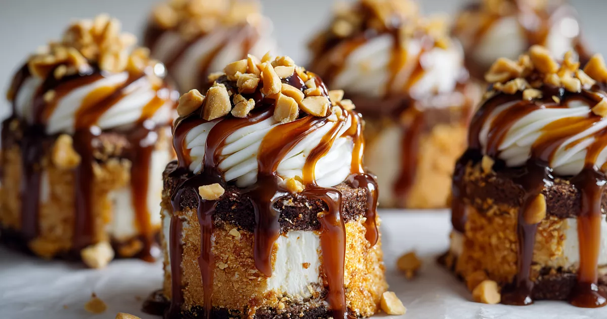 Быстрый десерт: мягкий шоколадный бисквит, ванильный крем, карамель и солёный арахис.