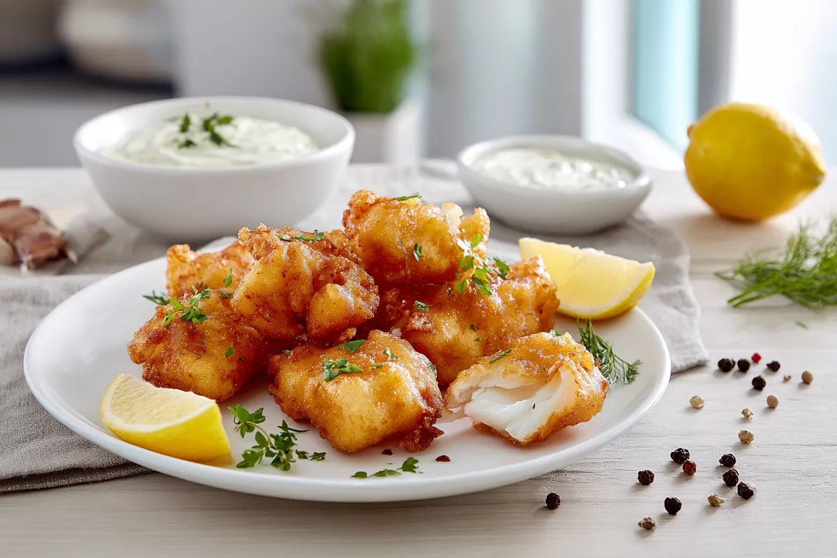 Кусочки рыбы обмакиваем в кляр, стряхиваем излишки. Аккуратно кладём в масло. Жарим 3–4 минуты с одной стороны до румяной корочки. Переворачиваем лопаткой – ещё 2–3 минуты. Огонь средний: внутри рыба должна приготовиться, снаружи – не подгореть.