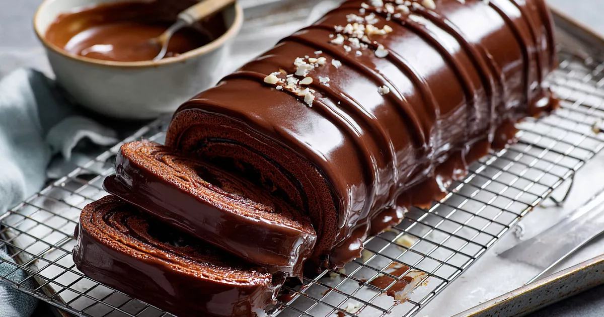 На водяной бане растопите 200 г чёрного шоколада. При желании добавьте немного измельчённого жареного миндаля для хруста. Осторожно снимите рулет с плёнки, поставьте на решётку и полейте тёплым шоколадом, распределив по поверхности ложкой или шпателем. После остывания глазурь застынет и придаст десерту блеск и структуру.