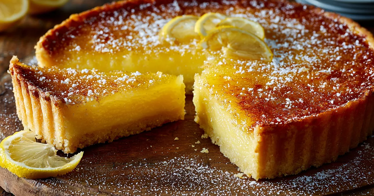 Нежное песочное тесто, яркая лимонная начинка в три слоя. Готовится просто, выпекается 30 минут – идеален к чаю.
