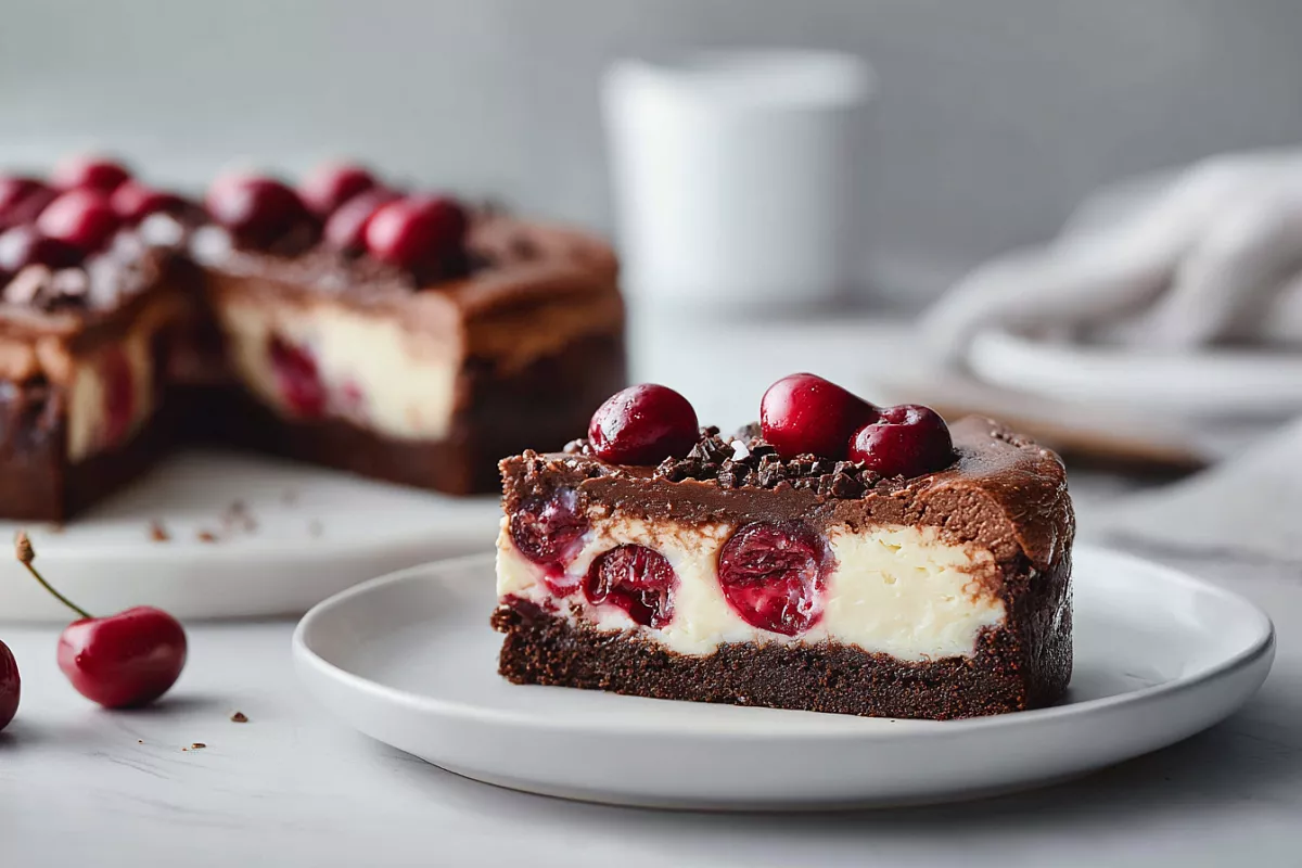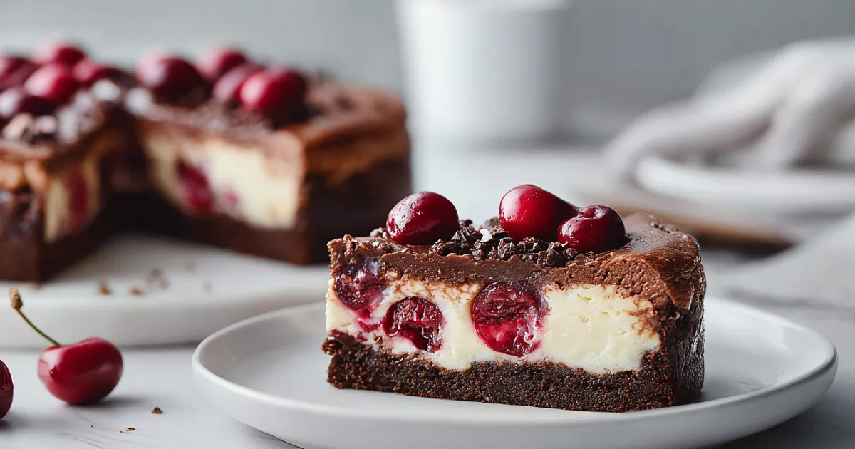 Два слоя в одном пироге – насыщенный брауни и бархатистый чизкейк. Вишня добавляет сочности, а готовится всё просто.
