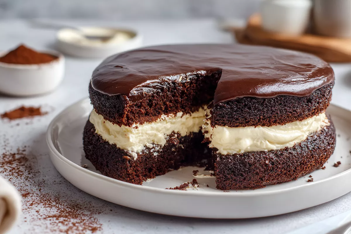 Торт тает во рту – пористый шоколадный бисквит, ванильный крем как пломбир. Готовится из обычных продуктов.