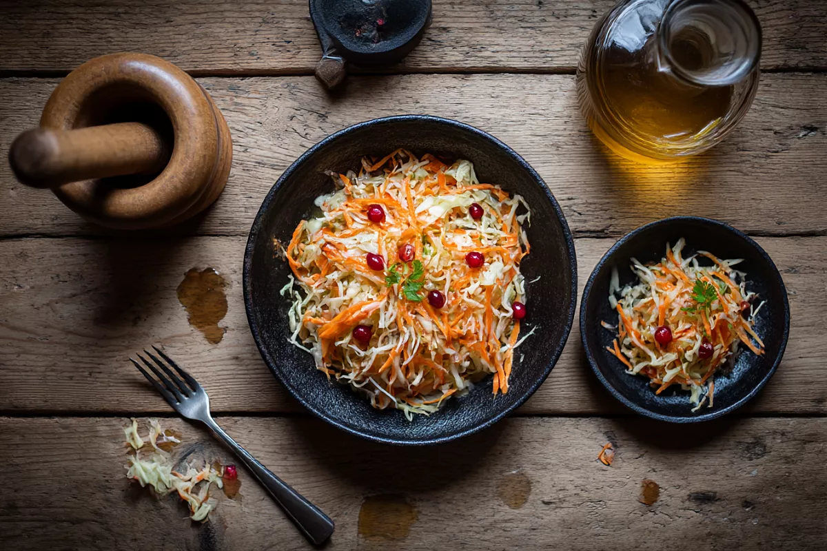 Этот старый советский салат из капусты и моркови многие помнят ещё по столовым, но и дома он остаётся любимцем. Его можно быстро сделать буквально из того, что есть почти в каждом холодильнике, и подать к обеду или ужину. Салат получается сочным, полезным, хрустящим, а за его простоту и понятный вкус его продолжают готовить и сегодня. Это как раз тот случай, когда проверенный годами рецепт остаётся актуальным и не надоедает.