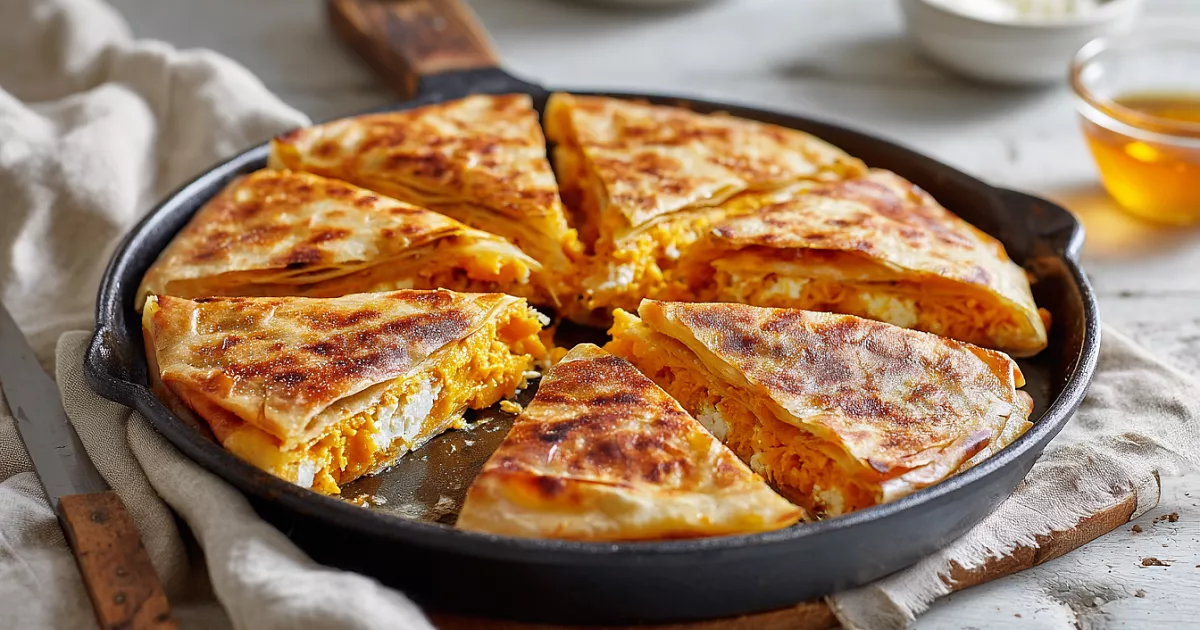 Тонкий лаваш с нежной начинкой из тыквы и творога превращается в золотистый пирог.
