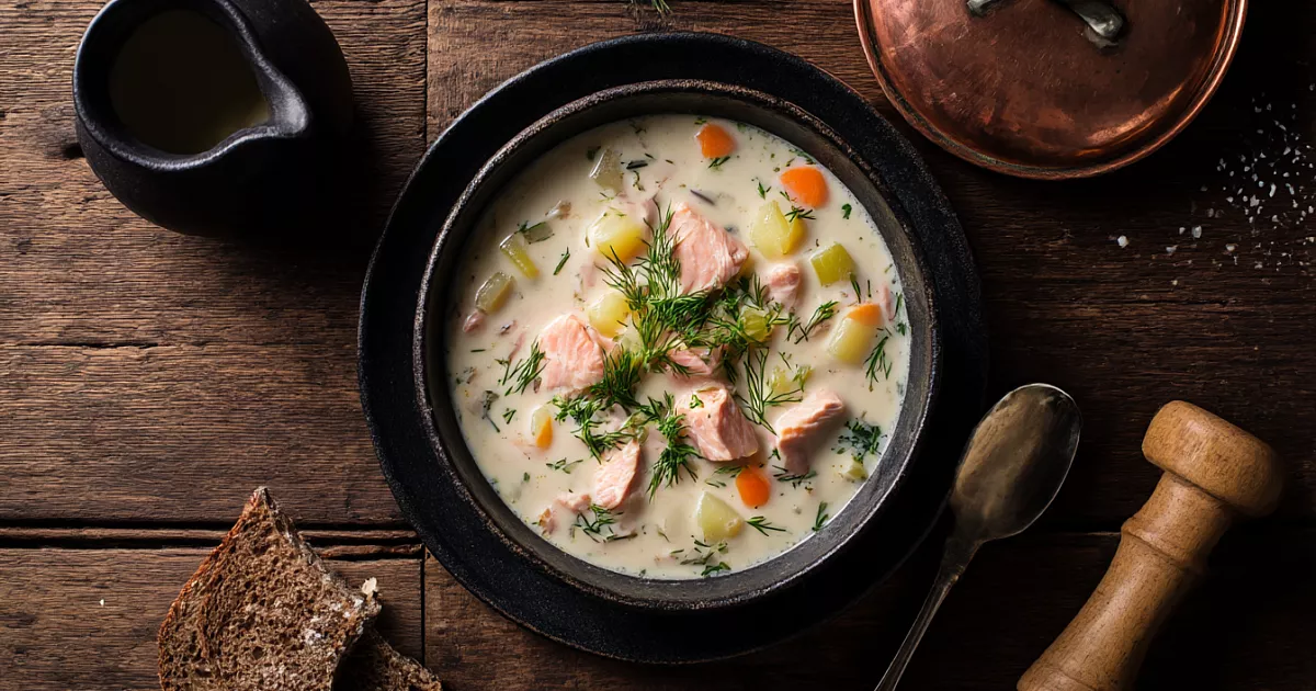 Сливочная финская уха из форели с овощами — густой тёплый суп для северного обеда.