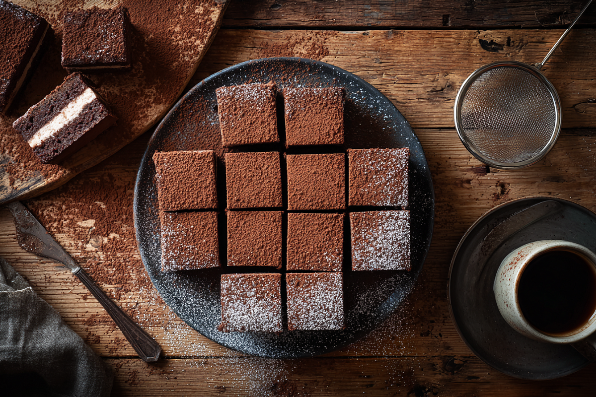 Для оформления достаточно чайной ложки какао. Просейте его через мелкое сито по верхнему слою крема, получится аккуратное бархатистое покрытие. Можно дополнительно присыпать крошкой из обрезков коржа или тёртым шоколадом, но и простая какао-«вуаль» смотрится очень нарядно.