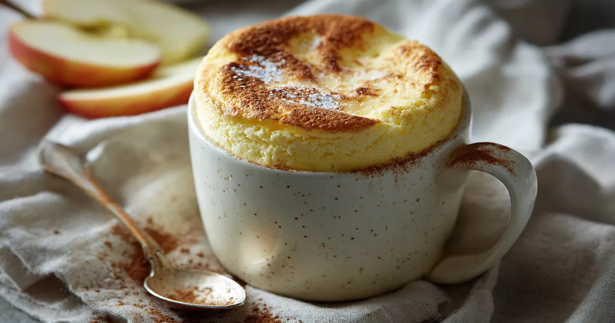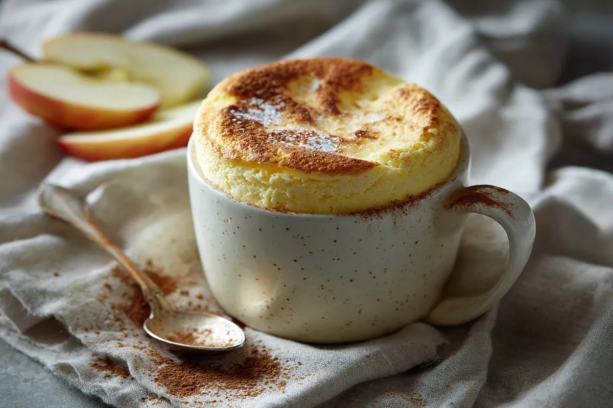 Творог, яблоко, корица в жидком тесте – выпекается в чашке.