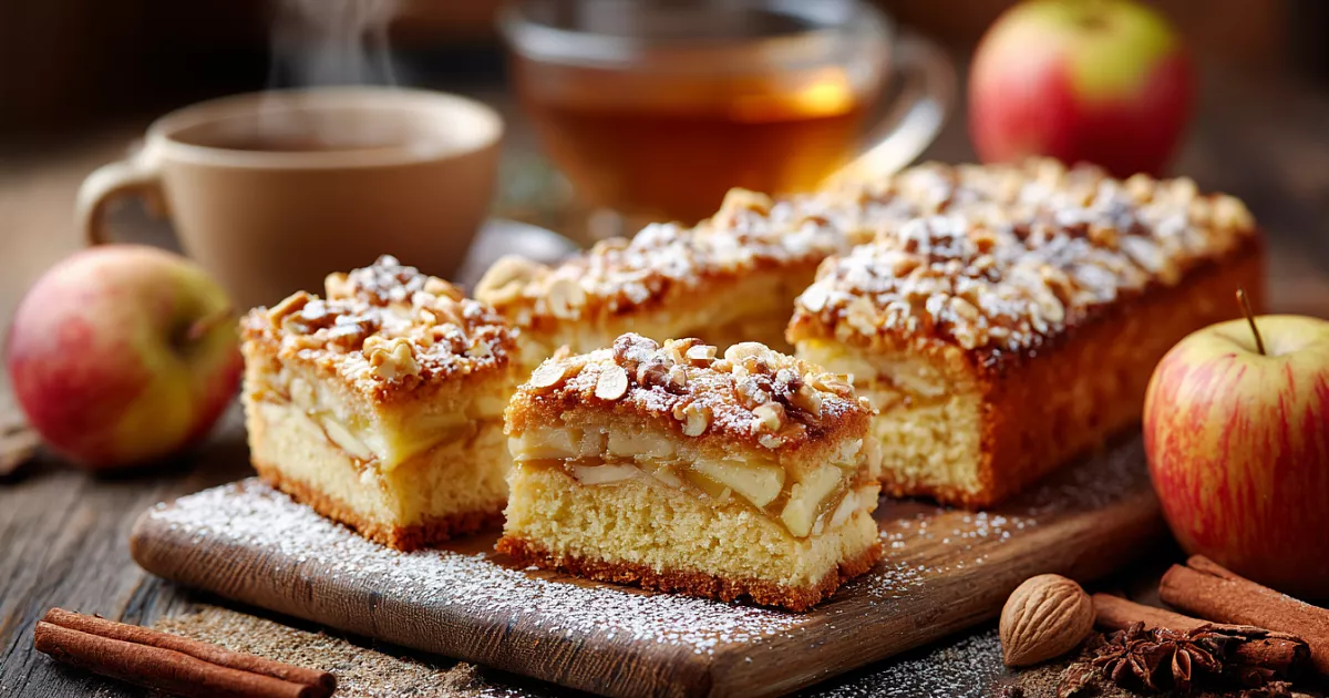 Режем тёплым – внутри кремовая текстура. Подаём с чаем – яблоки тают, орехи хрустят. Хранится 3 дня, становится сочнее.