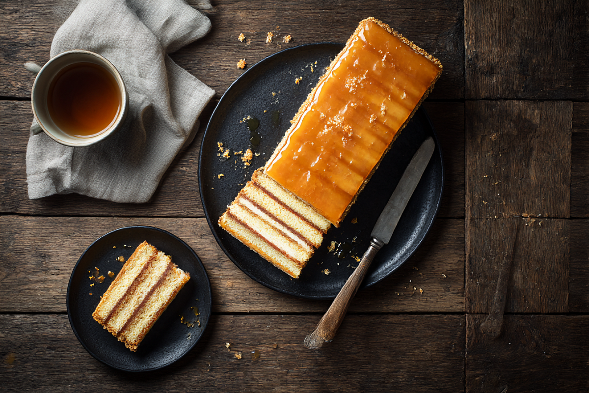 Честно скажу, этот вариант я полюбила не меньше классического. Бисквит получается мелкопористый, мягкий, его можно есть даже просто так, как самостоятельный десерт. Крем — настоящий пражский: на сгущёнке, яйцах и масле, но по вкусу совсем не тяжёлый. Готовится всё быстрее, чем по старым ГОСТовским схемам, а гости потом только удивляются, что это был «бюджетный» домашний торт, а не покупной.