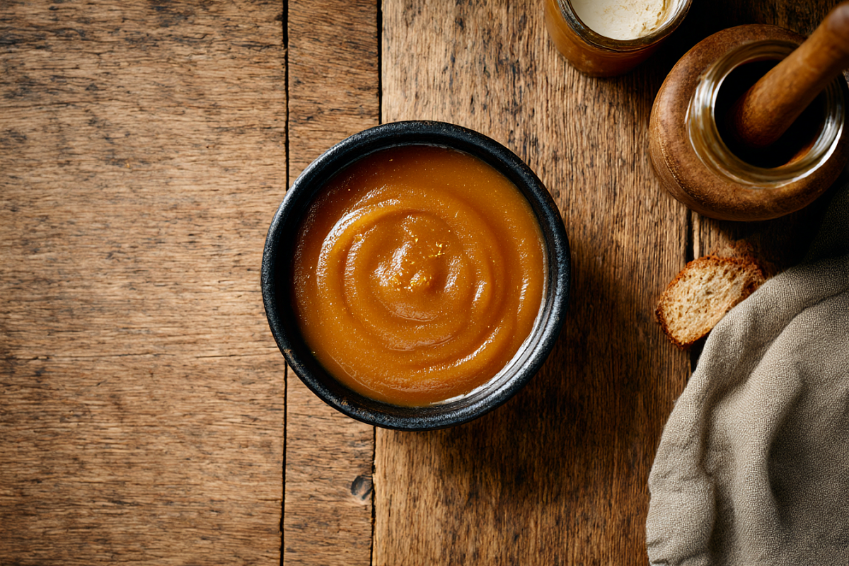 Важно вовремя остановиться: нам нужна кремовая, податливая масса, а не жидкое миндальное масло. Именно такой крем даст яблочному «маслу» бархатную, плотную текстуру и естественную ореховую сладость без сахара.