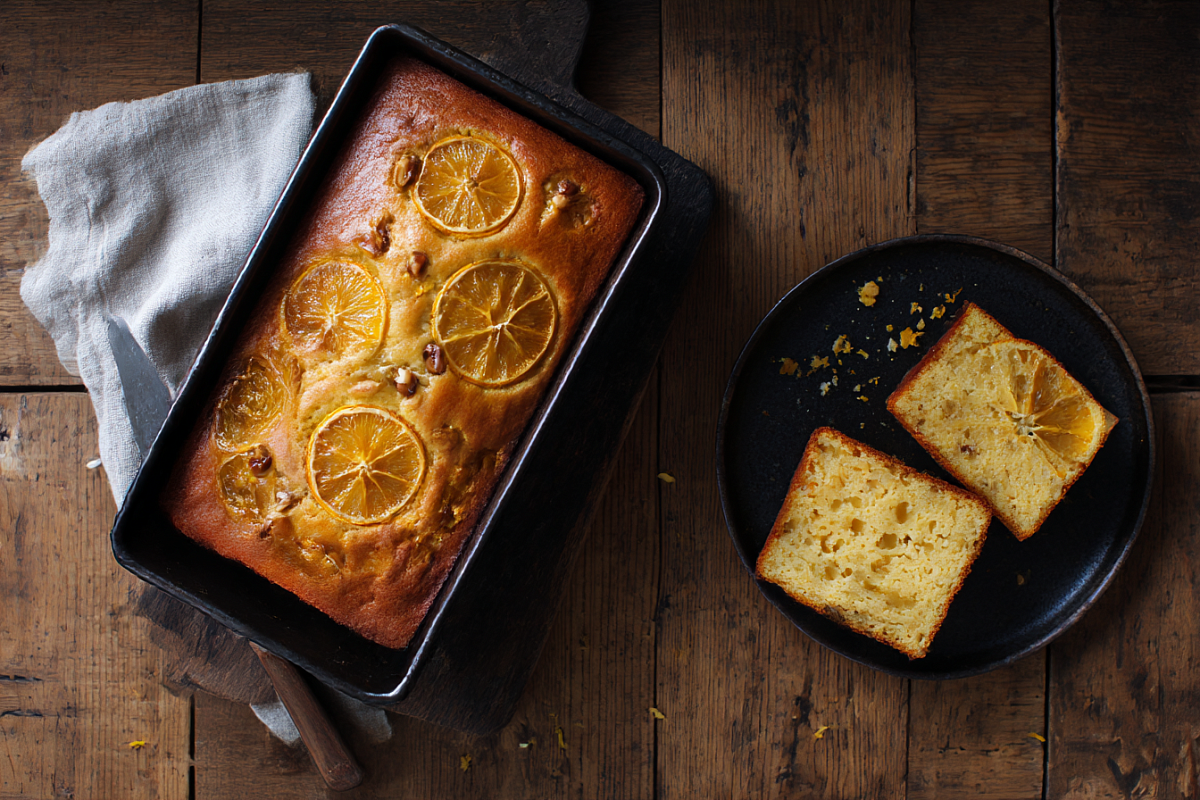 Яркий апельсиновый пирог на растительном масле без яиц и молока остаётся мягким и ароматным несколько дней.