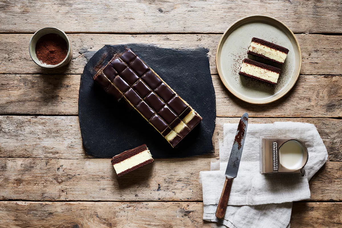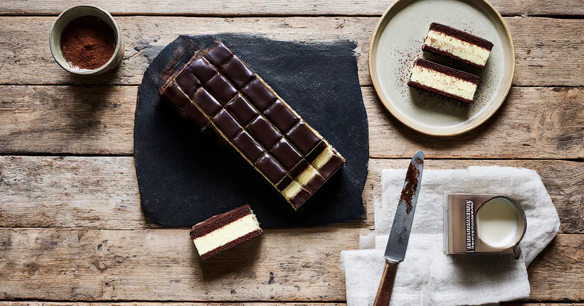 Шоколадный бисквит с нежной молочной начинкой без лишних хлопот: пирожное получается мягким, лёгким и в меру сладким.