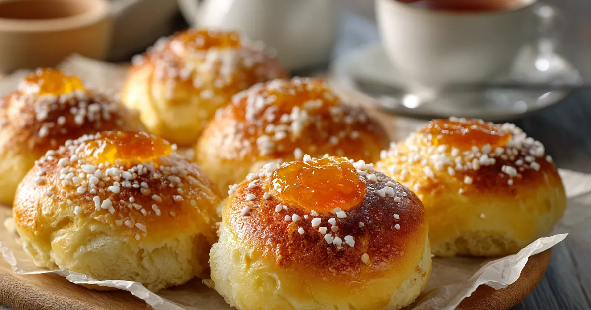 Делаем углубление пальцем, кладём абрикосовое варенье. Печём в разогретой до 180°C духовке (верх-низ) 20–25 минут до золотистости. Остужаем 10 минут. Совет: сода для воздушности. Лайфхак: липкое тесто – мягкие булочки.