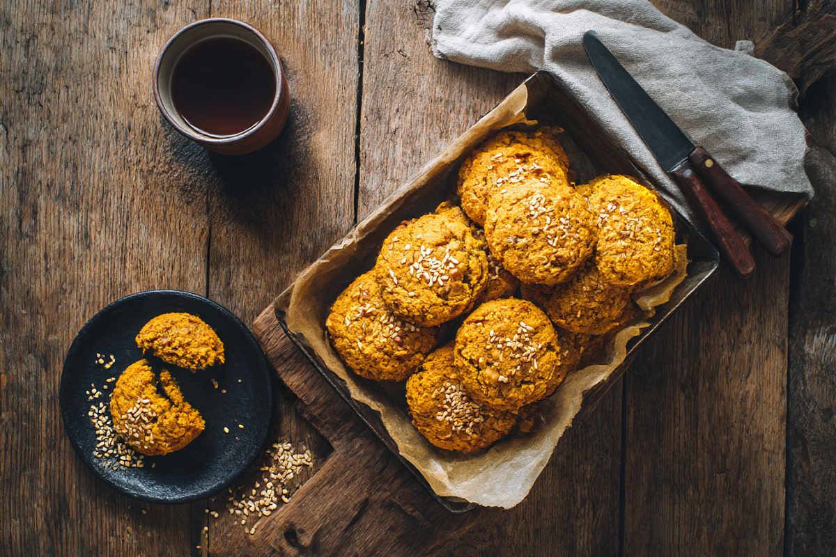 Честно скажу, сама каждый раз любуюсь, когда на противне выстраиваются эти ярко-оранжевые кружочки. Тёплый запах тыквы и корицы моментально наполняет дом спокойствием, будто за окном не слякоть, а тихая золотая осень. Печенье получается мягким внутри, с ореховыми вкраплениями и лёгким хрустом кунжута. И главное — всё очень по-домашнему: минимум продуктов, чуть-чуть времени и никаких сложных приёмов.