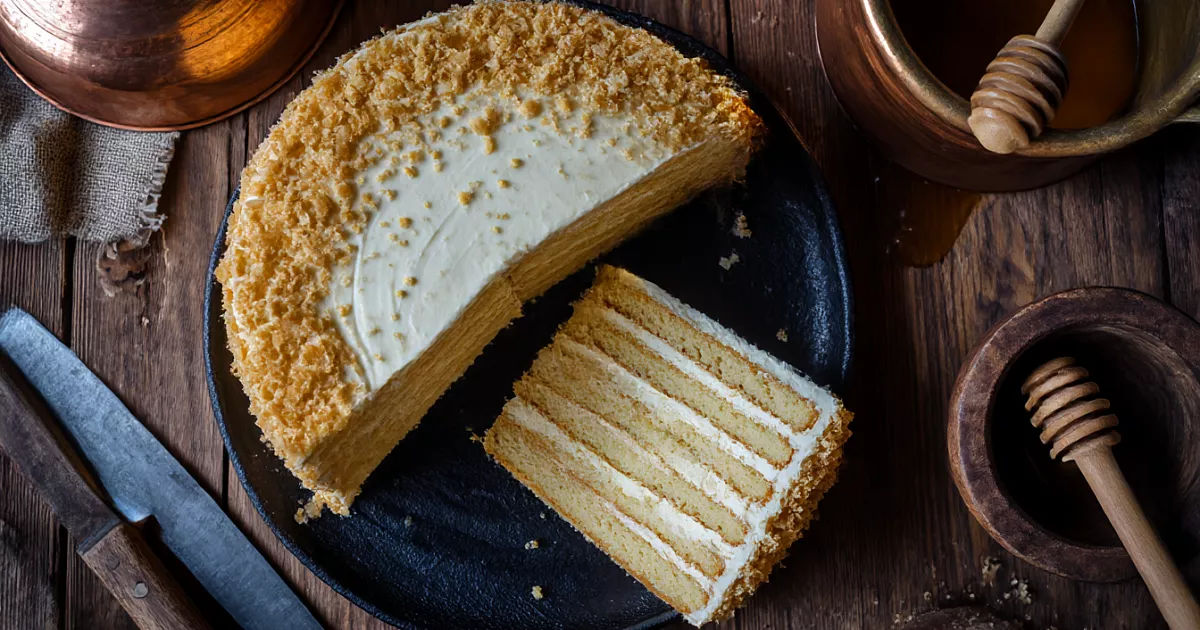 Нежный, воздушный и бюджетный торт из простых продуктов: медовые коржи и сметанный крем собираются за вечер без лишних хлопот.