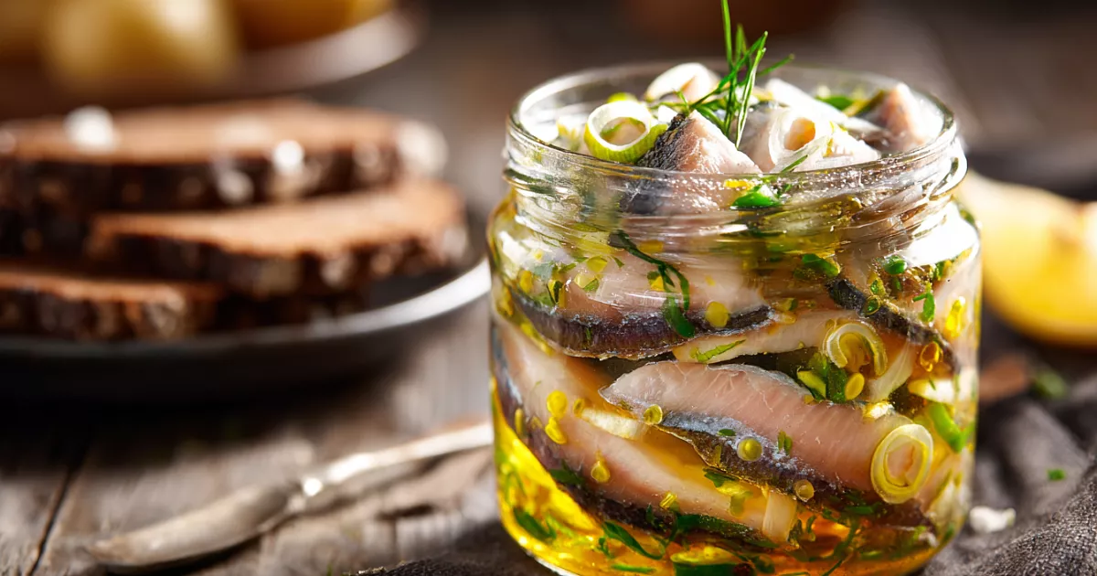 Закуска из двух селёдок в медово-горчичном маринаде покоряет с первого кусочка.