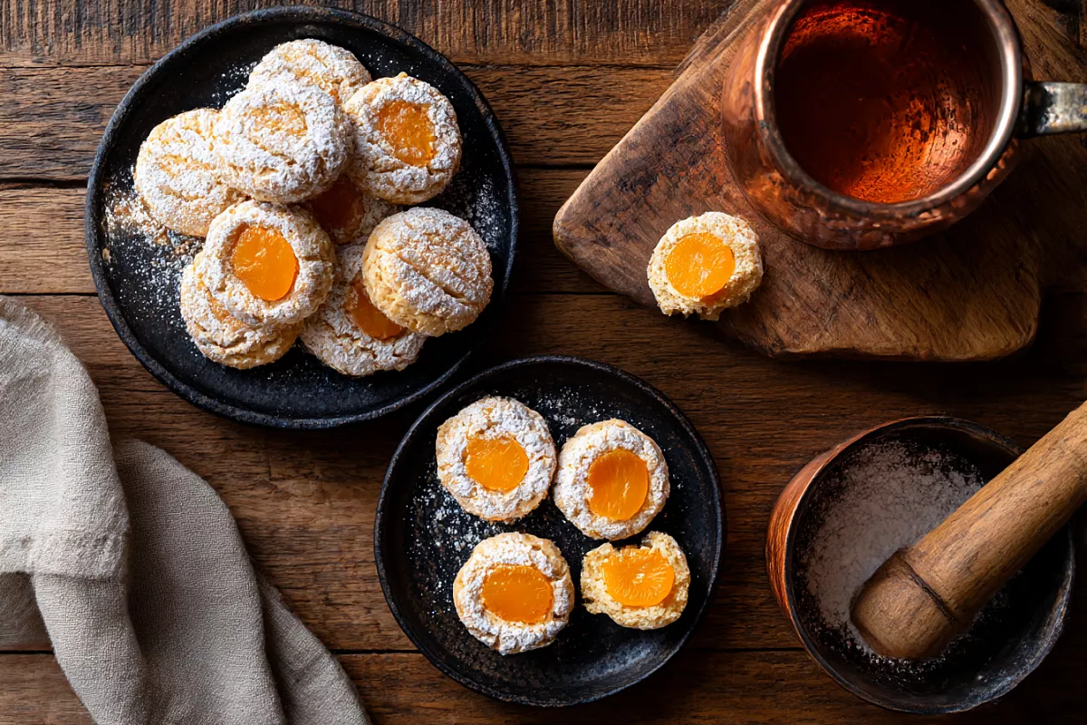 Цедру снимайте тонко, без белой кожицы; начинку удобнее сварить первой, пока тесто охлаждается; обязательно укладывайте заготовки кончиком вниз — так они не раскроются в печи; если начинка получилась слишком густой, распределяйте её тонкой дорожкой — печенье не потрескается.