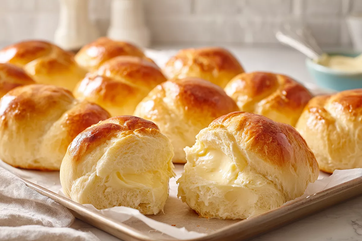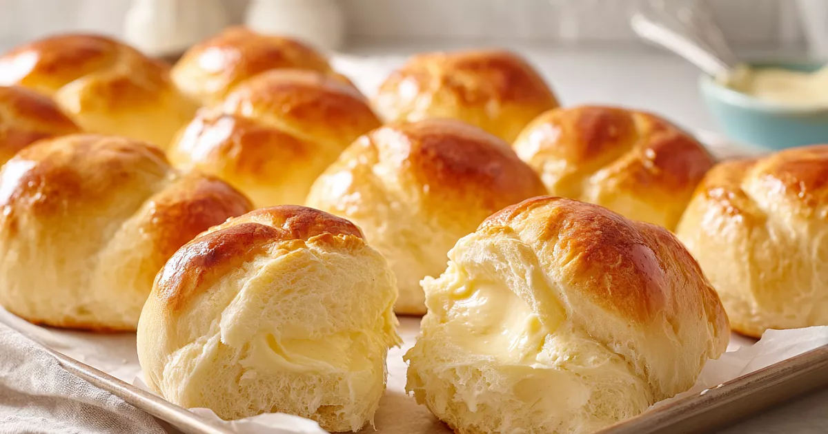 Дрожжевое тесто с крахмалом не черствеет, крем бархатистый, а булочки напоминают ракушки. Выпекаются 20 минут, остаются свежими долго.