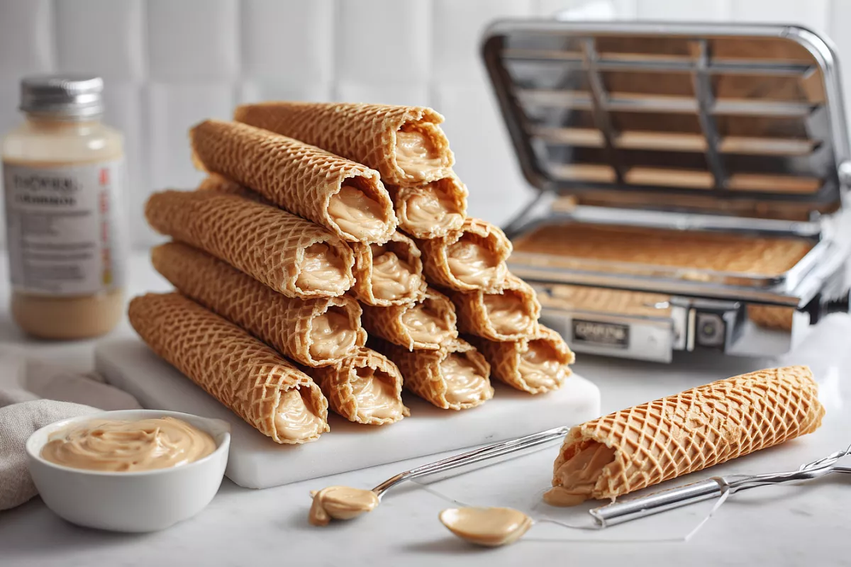 Остужаем 10 минут – вафли становятся хрустящими. Подаём сразу. Храним в герметичном контейнере до 5 дней при комнатной температуре.