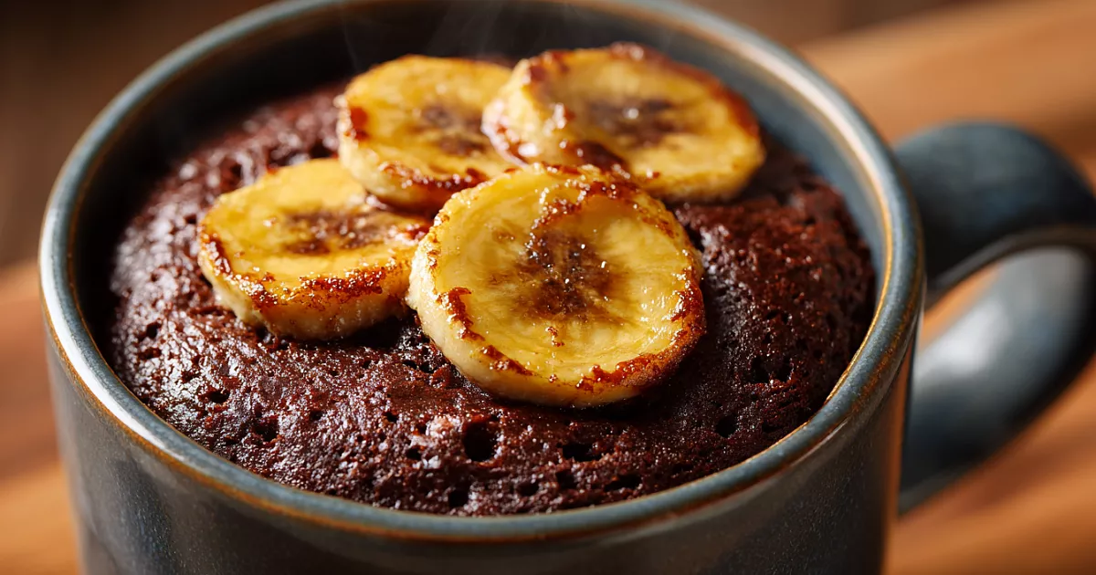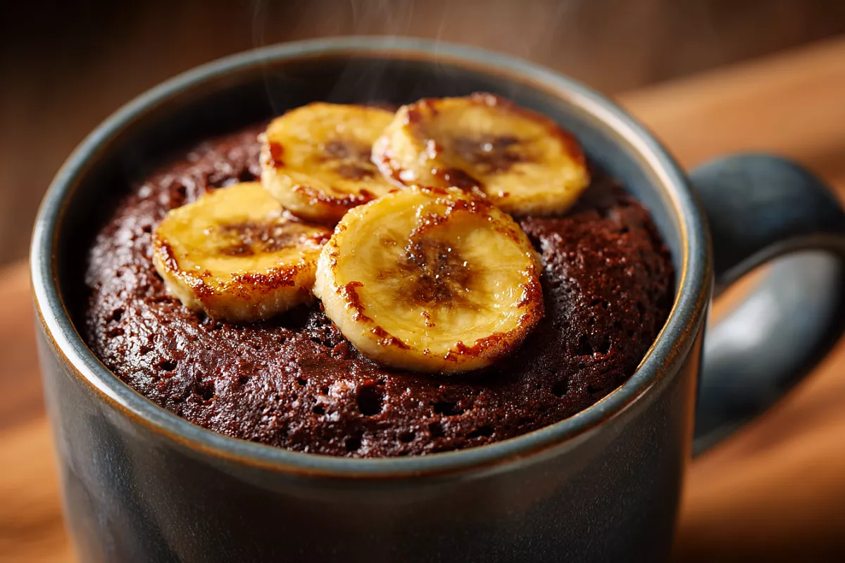 Спелый банан + рисовая мука + какао. Постный, 800 Вт, в кружке 250 мл.