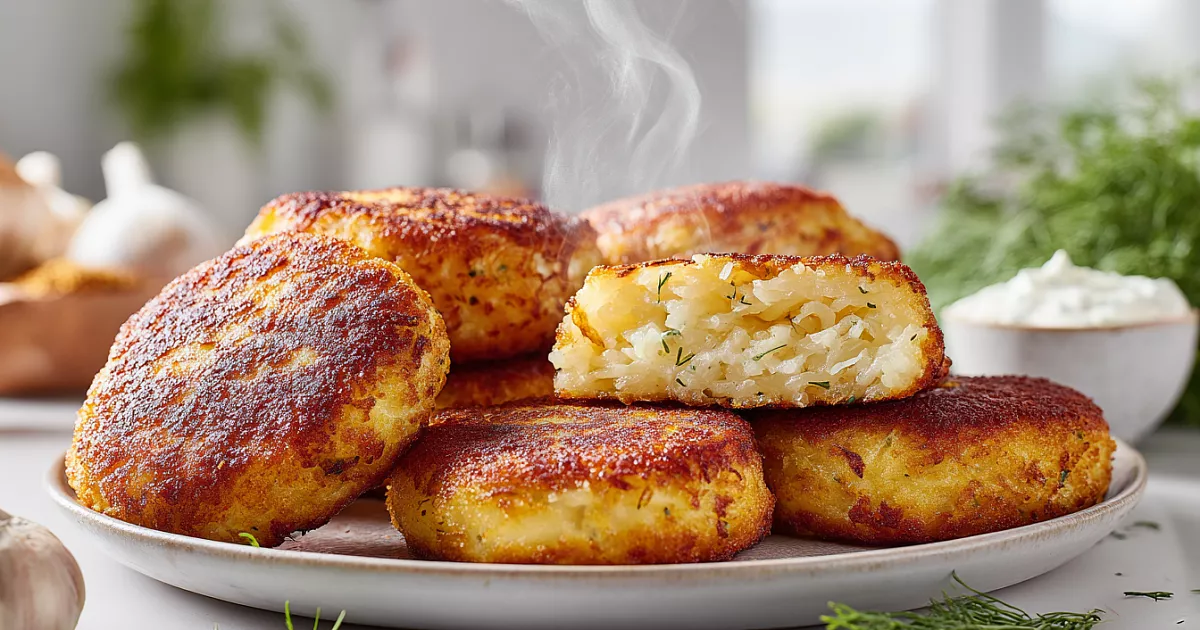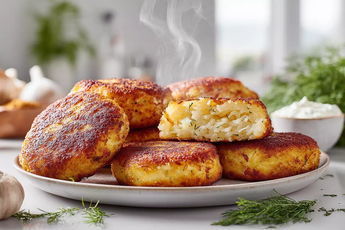 Простые котлеты из картофеля и капусты жарятся на сковороде. Подаются со сметанным соусом. Используем продукты из домашних запасов.
