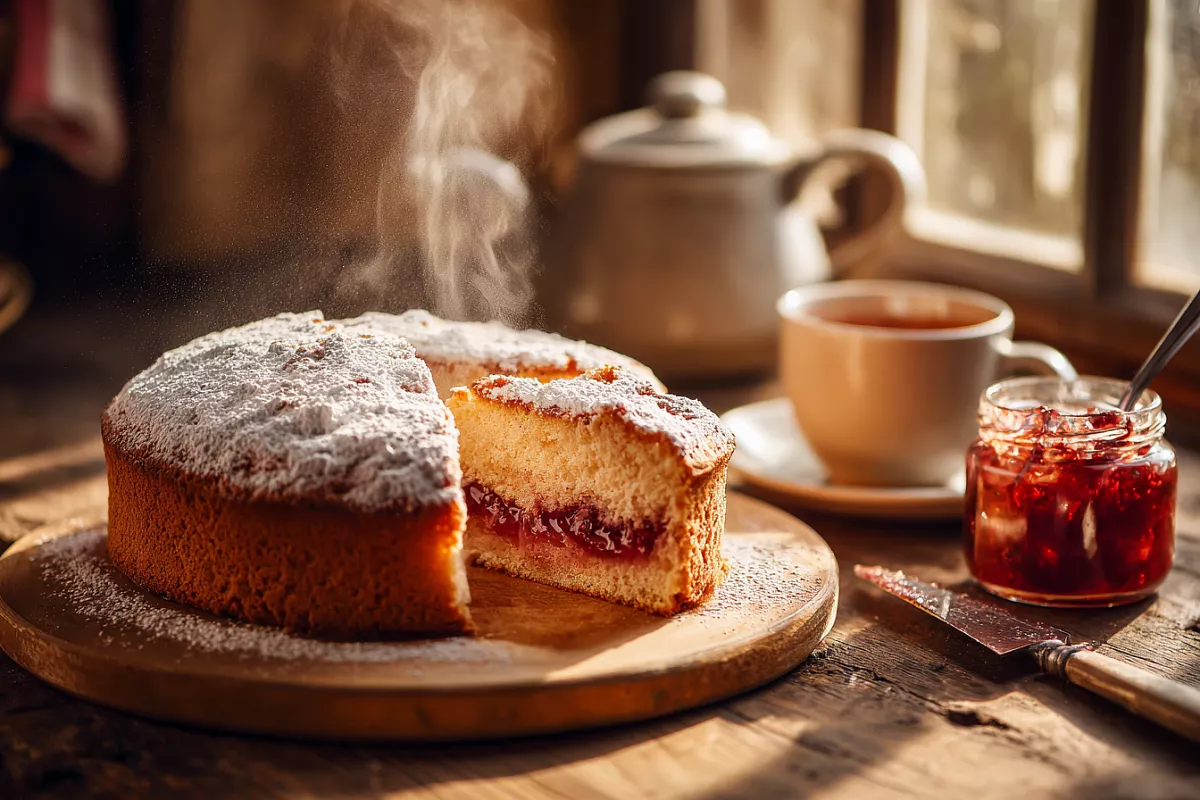 Форму смазываем сливочным маслом и присыпаем мукой. Выливаем половину теста. Сверху раскладываем 100 г любого густого джема (малина, вишня, смородина — что есть). Заливаем оставшимся тестом. Слегка разравниваем и делаем зигзаг лопаткой, чтобы всё красиво разошлось.
