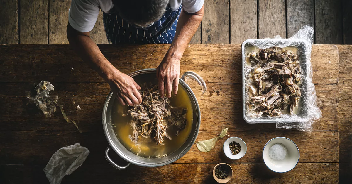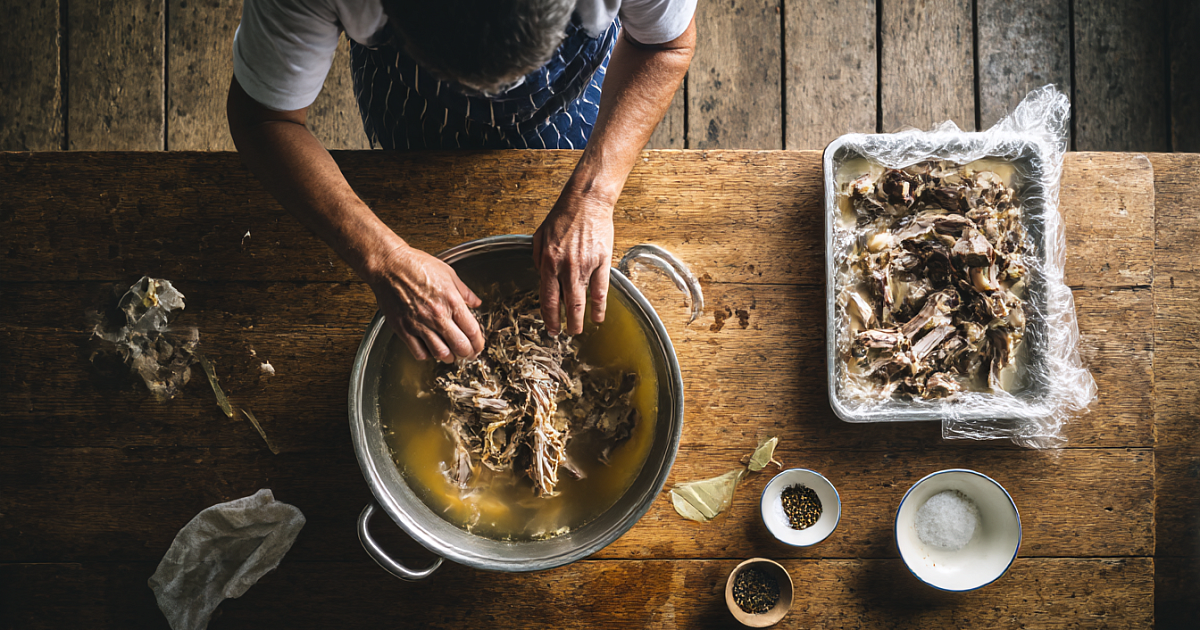 Готовится зельц долго по времени, но сам процесс простой. Рулька варится медленно, на слабом огне, пока мясо не начнёт само отходить от костей. Потом всё дело за вилкой и хорошим бульоном: мясо разделить, чеснок добавить, залить горячим отваром, утрамбовать в форму и убрать в холод. В итоге из недорогих рульек получается целый лоток вкуснейшего холодного мяса.