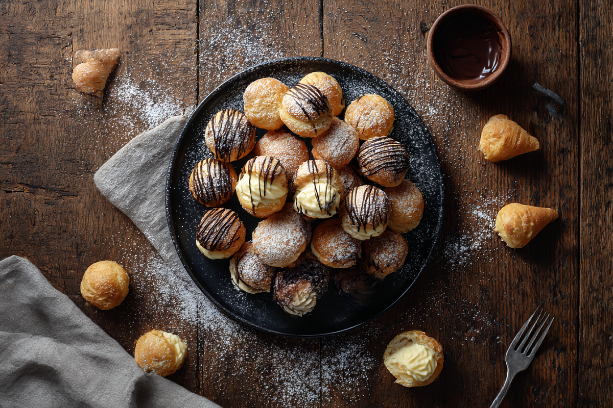 Заварное тесто пугает многих только до первого удачного опыта. А потом уже трудно остановиться: лёгкие хрустящие шарики получаются один к одному, внутри они пустые и совсем невесомые, а крем — густой, ароматный, очень домашний. В таком пирожном тонкое, несладкое тесто и сладкий нежный крем создают тот самый баланс, когда не приторно и хочется взять ещё.