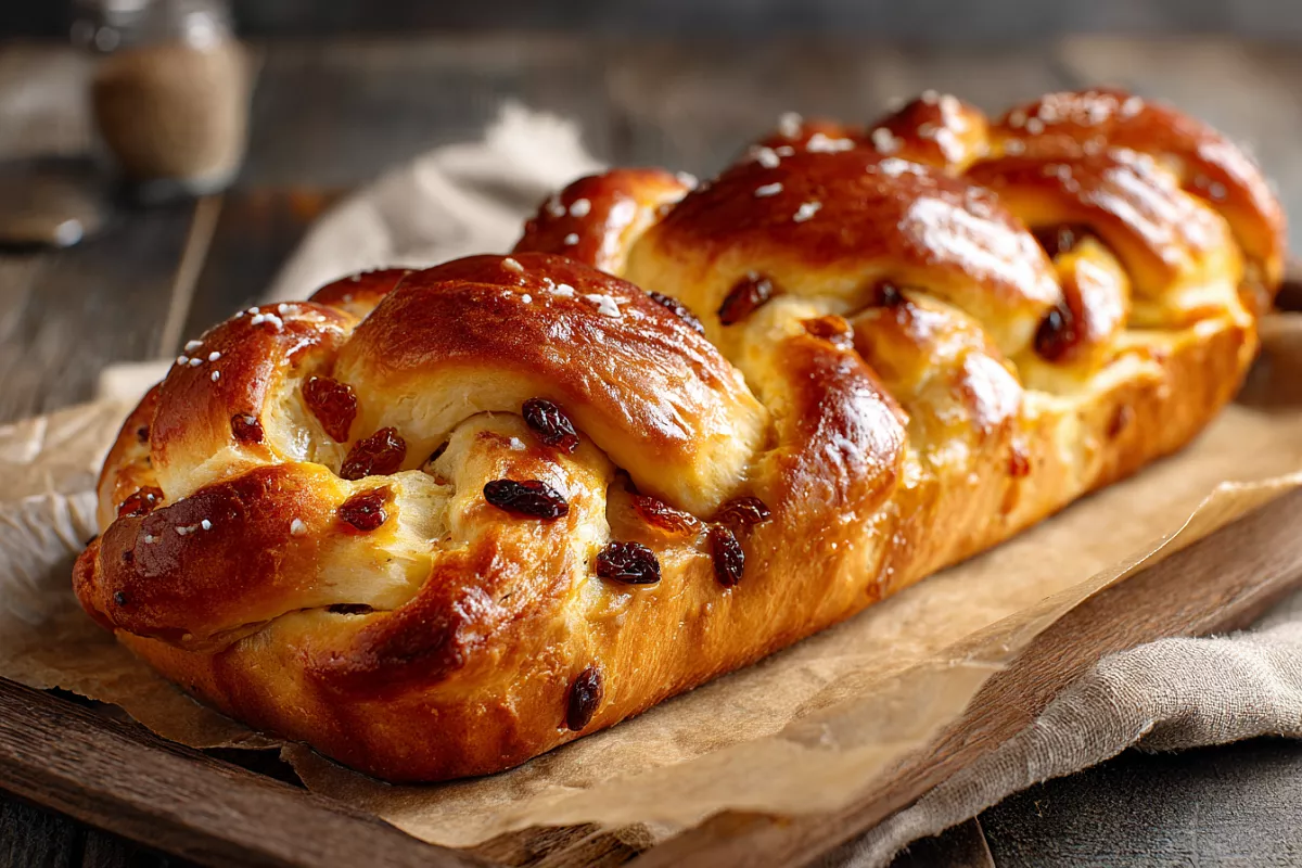 Сворачивают рулетом. Разрезают вдоль на 2 части, не до конца. Переплетают в косичку. Концы защипывают. Кладут на противень с пергаментом.