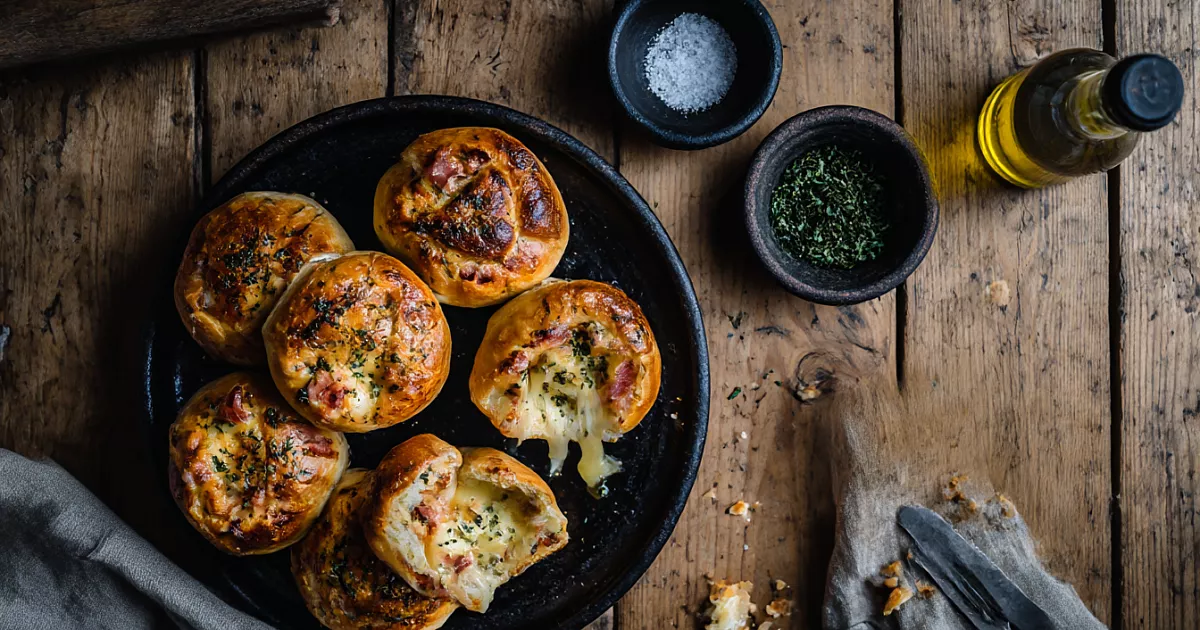 Хрустящие булочки с моцареллой, ветчиной и помидорами выручают, когда нужен волшебный завтрак.