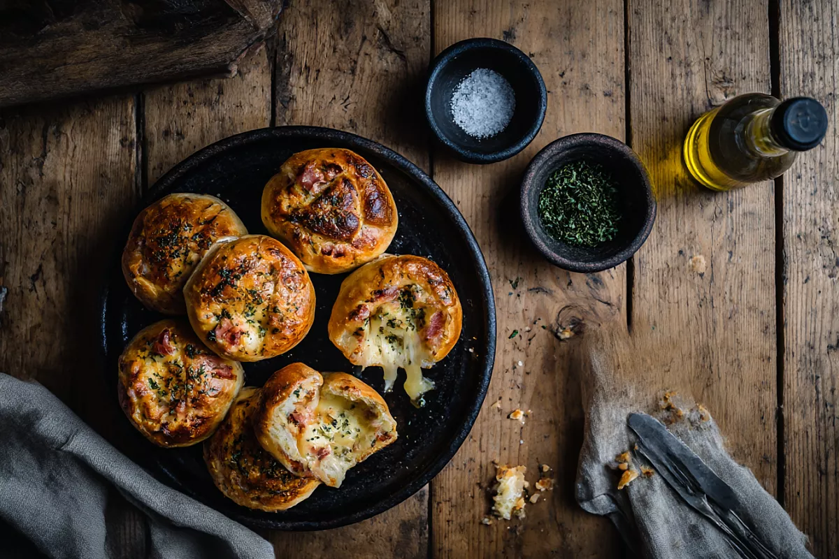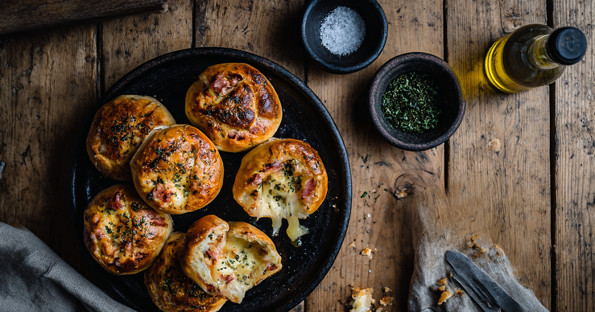 Булочки для бургеров, кусочек ветчины, немного зелени и помидор. Стоит только добавить хороший сыр, и получаем мой любимый вариант: внутри сочная начинка, снаружи аппетитная хрустящая корочка. Такие булочки удобно подать порционно, каждый берёт свою и не ждёт, пока что-то нарежут или разложат по тарелкам. Это тот случай, когда почти без усилий получается блюдо, которое хочется съесть до последней крошки.