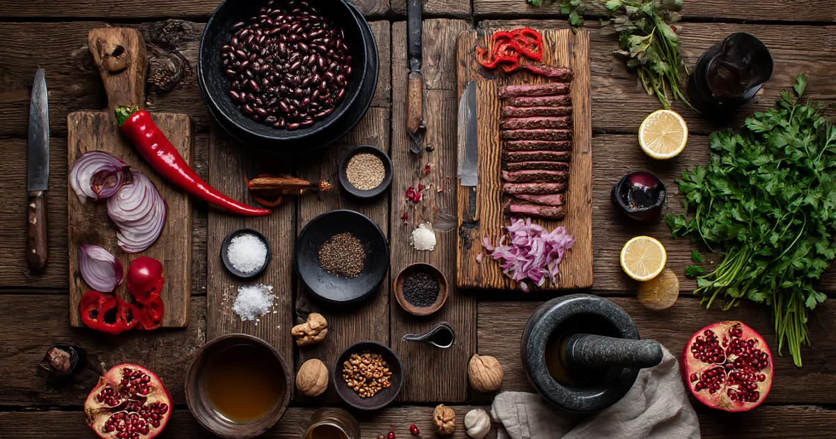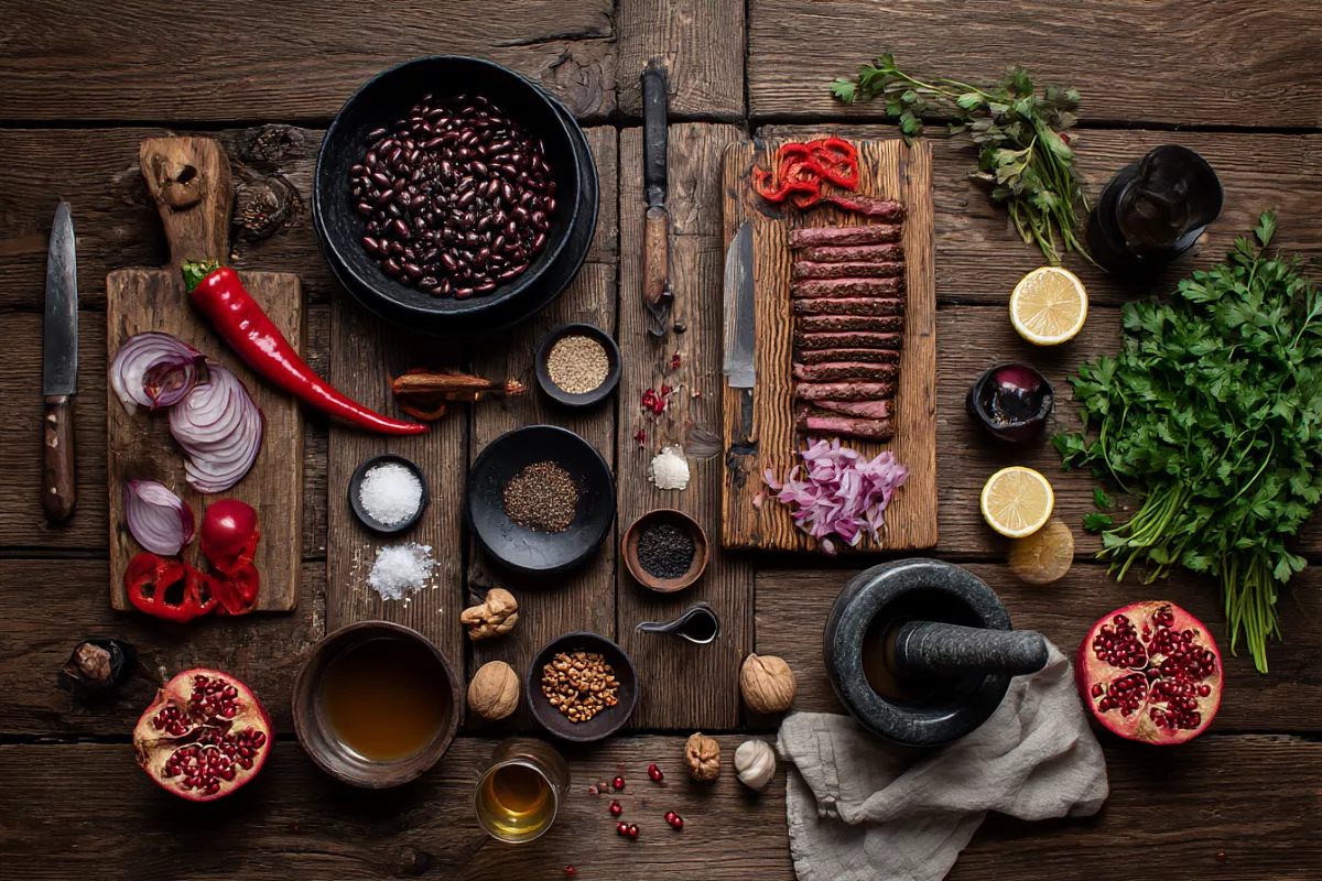 В этом салате есть всё, за что так любят грузинскую кухню: мягкая отварная говядина, нежная фасоль, сладкий перец, хрустящий лук и щедрая зелень. Ореховый соус с хмели сунели и гранатовым соком объединяет продукты в один насыщенный, очень ароматный вкус. Такой салат хорошо смотрится на праздничном столе, но его спокойно готовят и в обычный день, когда хочется чего-то яркого и душевного. А если вы уже полюбили кинзу, то поймёте, как именно она меняет аромат и делает вкус по-настоящему тбилисским.