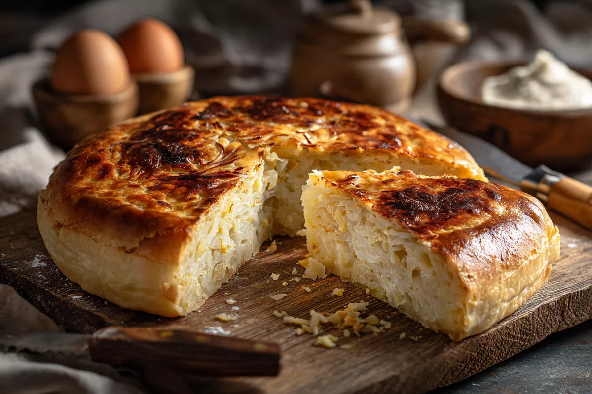 Сверху осторожно выливают оставшееся тесто, чтобы полностью покрыть начинку. Возвращают пирог в духовку при той же температуре 200 °C и пекут ещё 35–40 минут до красивого золотистого цвета. Готовность проверяют деревянной палочкой – она должна выходить сухой.