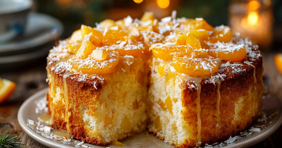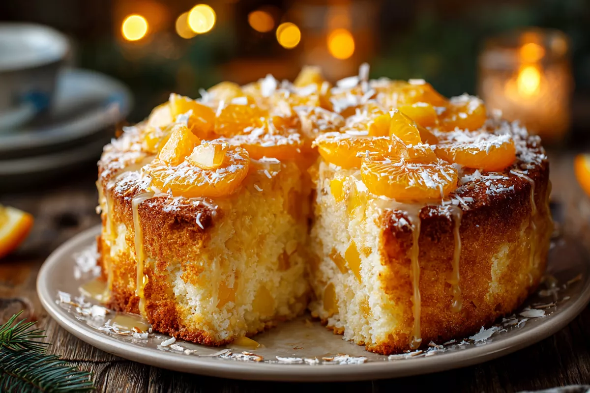 На следующий день шарлотка становится ещё вкуснее — пропитывается, кокос раскрывается, мандарины дают лёгкую кислинку.