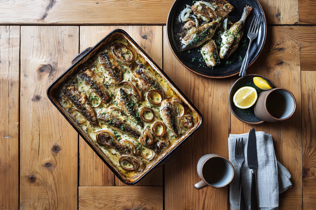 Если любите поострее, можно чуть увеличить количество горчицы или перца, но не переборщите, чтобы не заглушить вкус рыбы. Маринад не стоит держать слишком долго: скумбрия и так жирная, ей вполне хватает 15 минут. При желании к луку можно добавить кружочки лимона — они дадут лёгкую цитрусовую нотку при запекании.