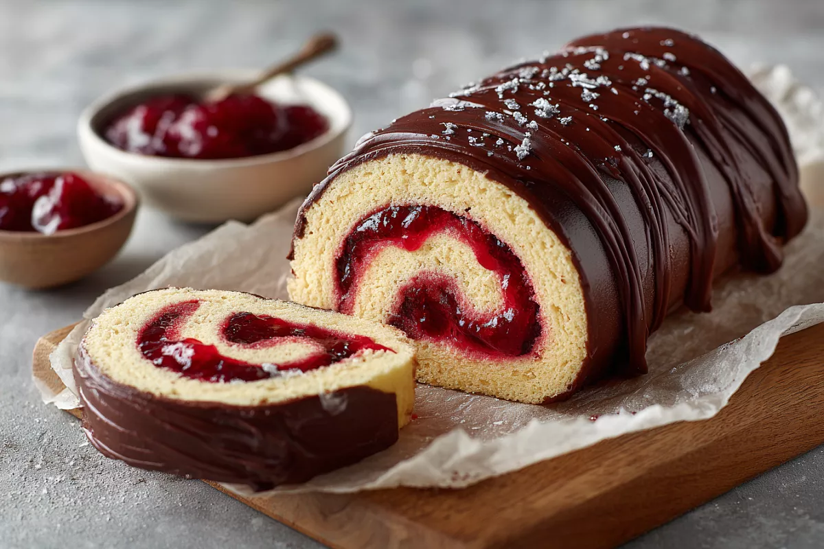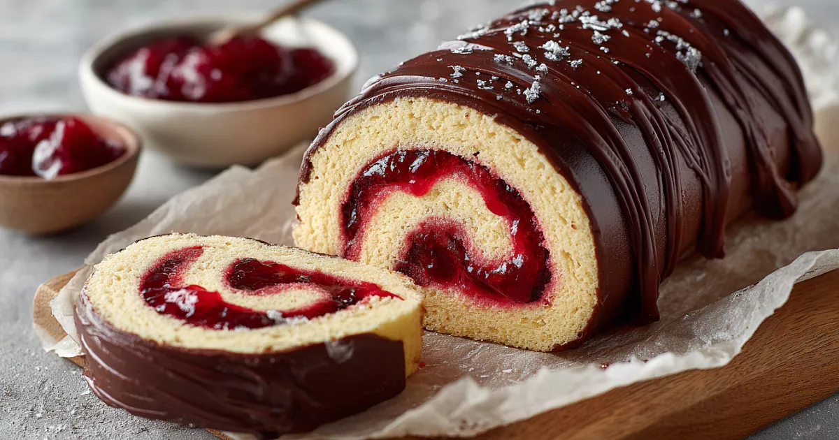 Тонкий воздушный бисквит, густая сочная вишнёвая начинка и шоколадная глазурь – этот рулет всегда получается с первого раза.