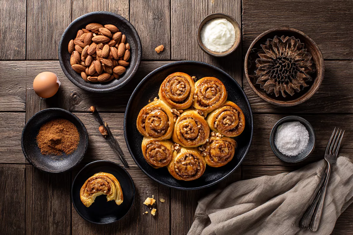 Пошаговый рецепт рулетиков с миндалём и корицей