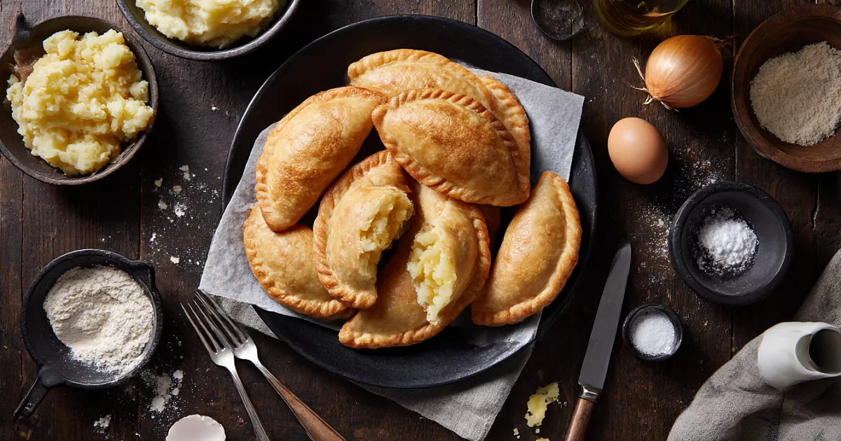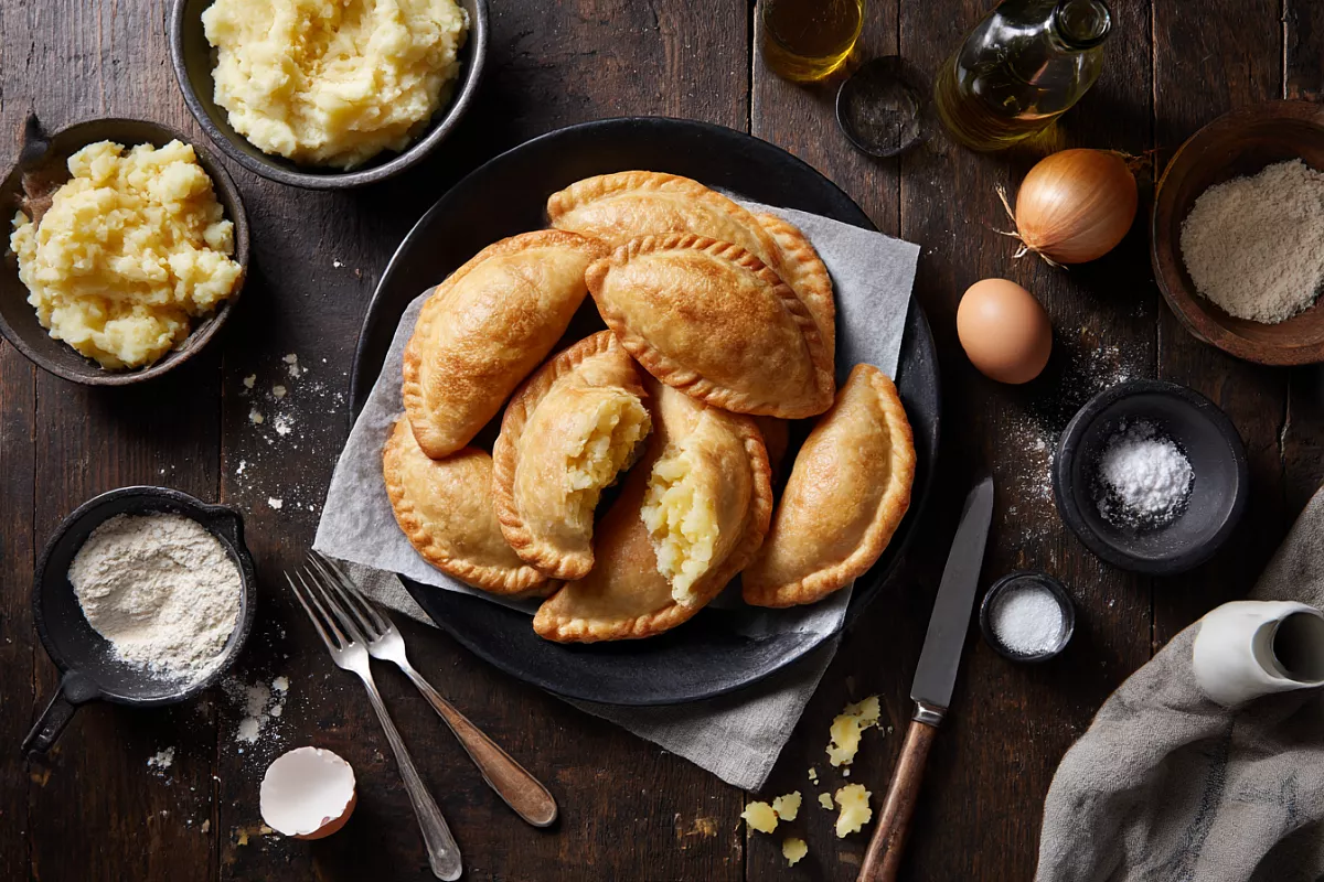 Очень удобно использовать вчерашнее картофельное пюре: добавили поджаренный до золотистого цвета лук, соль, перец, по желанию немного бекона и зелени — и начинка готова. Тесто получается мягкое, эластичное, без дрожжей и долгих расстоек, а работать с ним приятно: оно хорошо тянется, не рвётся и отлично поддаётся формовке просто руками.