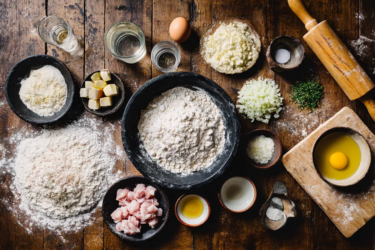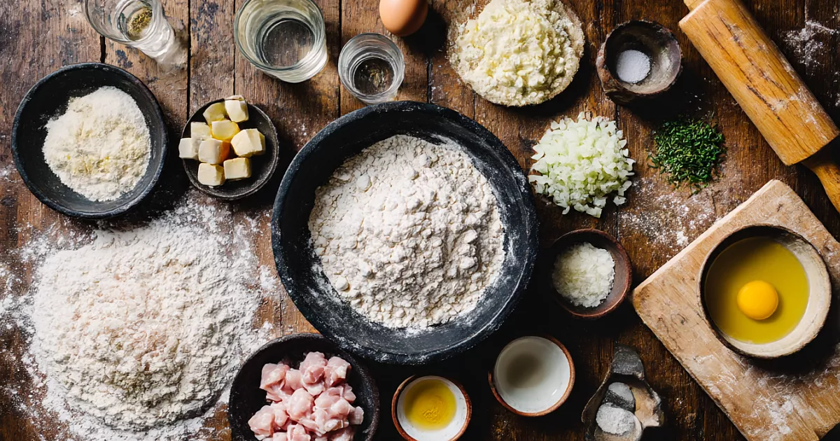 Тесто готовится на холодном сливочном масле и воде с небольшим количеством сахара, соли, уксуса и яйца. Его почти не вымешивают, только быстро собирают, придают плоскую форму и обязательно охлаждают в холодильнике около двух часов. За это время масло застывает, слои «созревают», и при выпечке получается тот самый хруст, ради которого хочется отломить ещё кусочек.