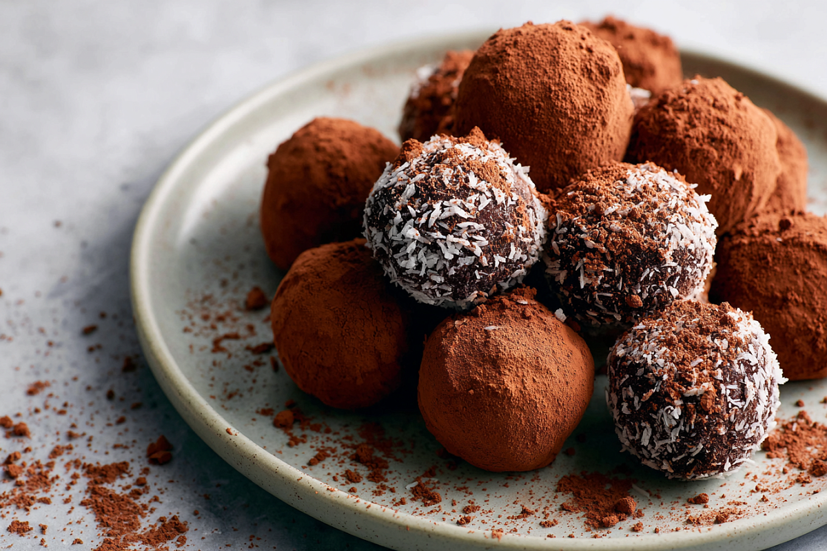 для обсыпки: ещё 30–50 г какао (или кокосовая стружка, орехи)