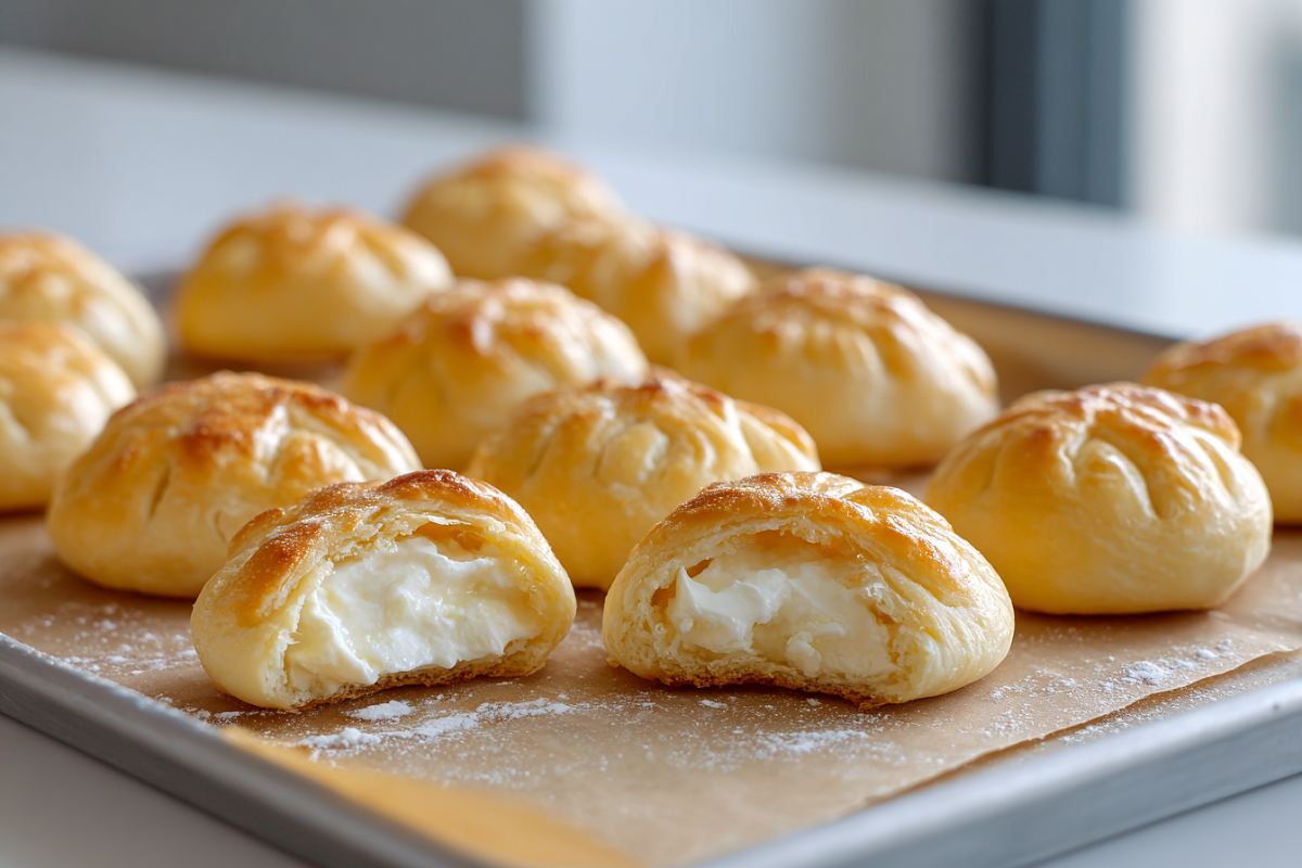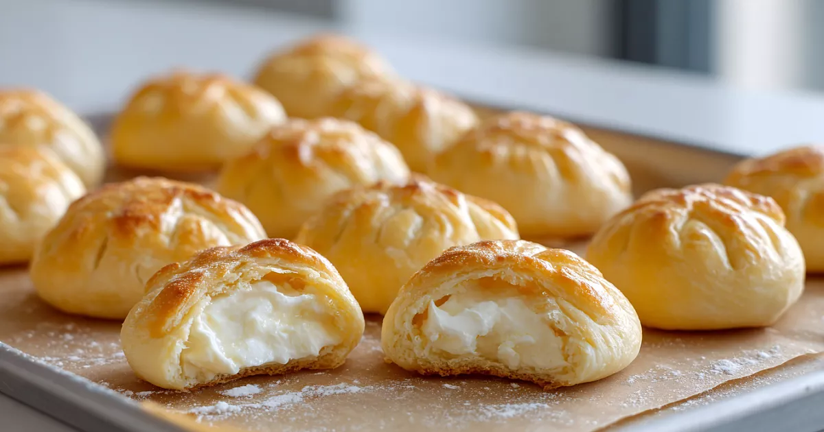 Тесто на сметане, творожная начинка – просто раскатал, отсадил, сложил и в духовку.